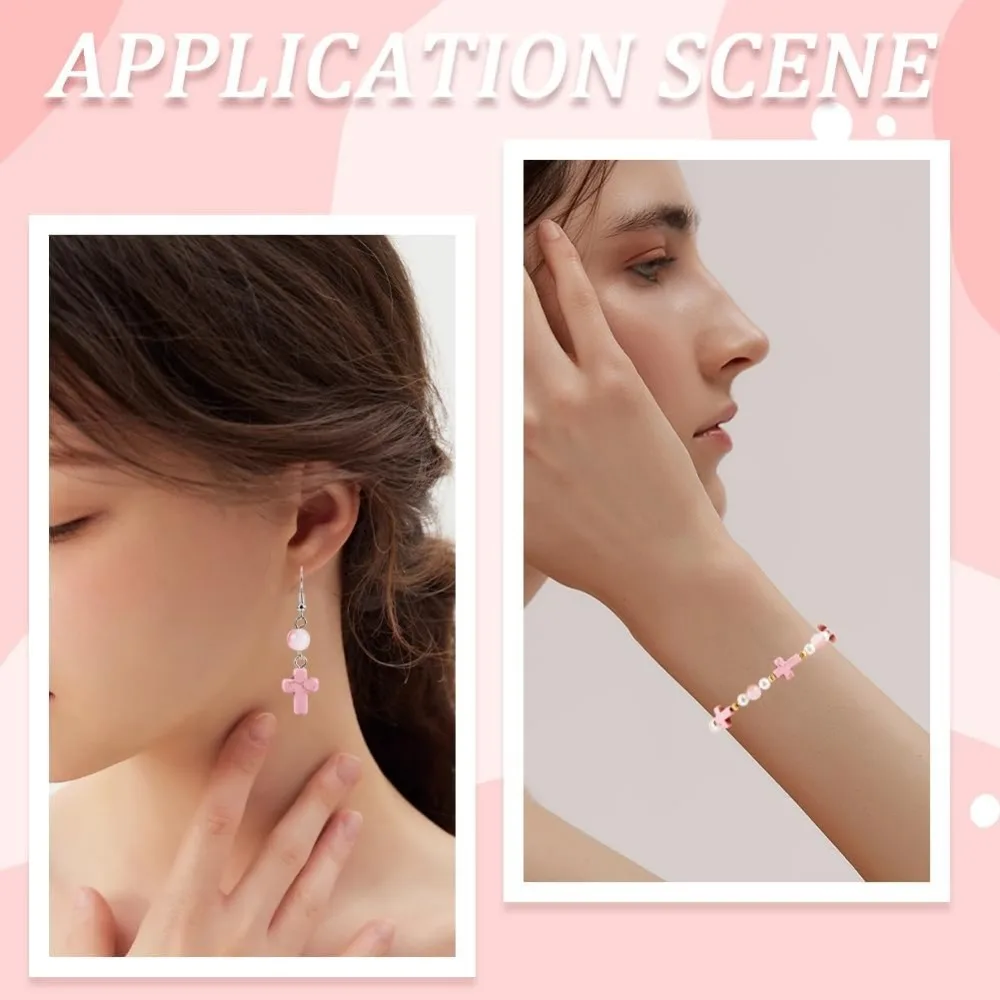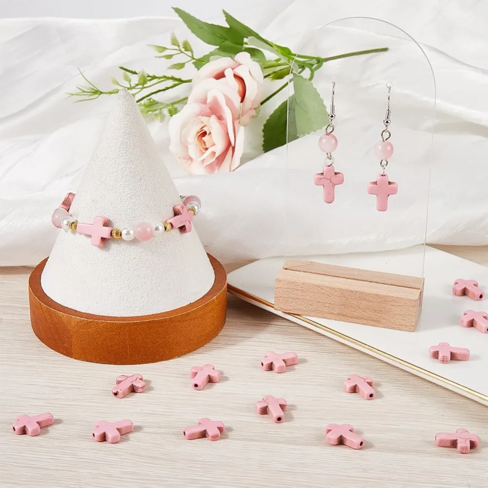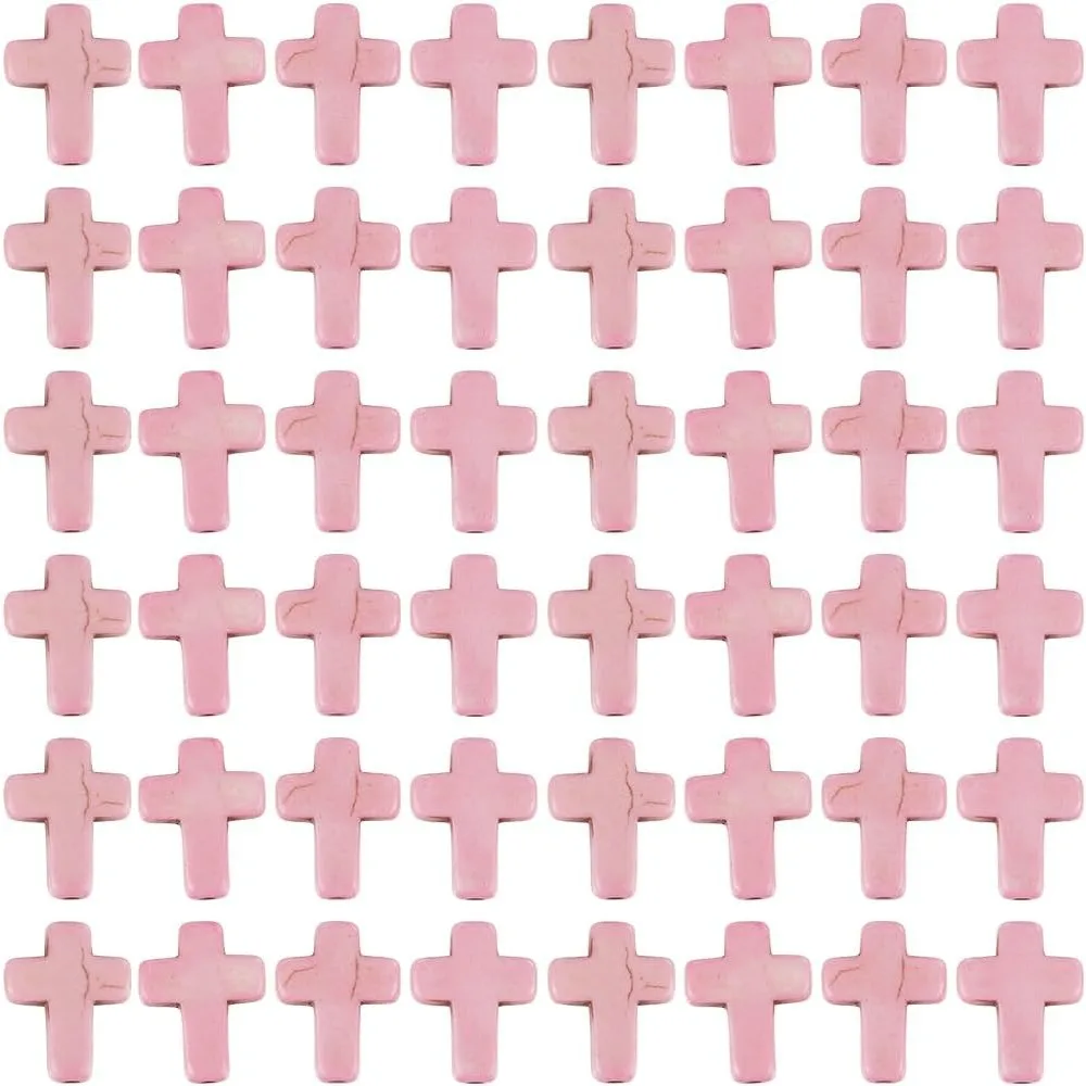 1 Box 100Pcs Cross Beads Pink Cross Bead Synthetic Turquoise Stone Dyed Beaded Small Crucifix Easter Charms Pocket