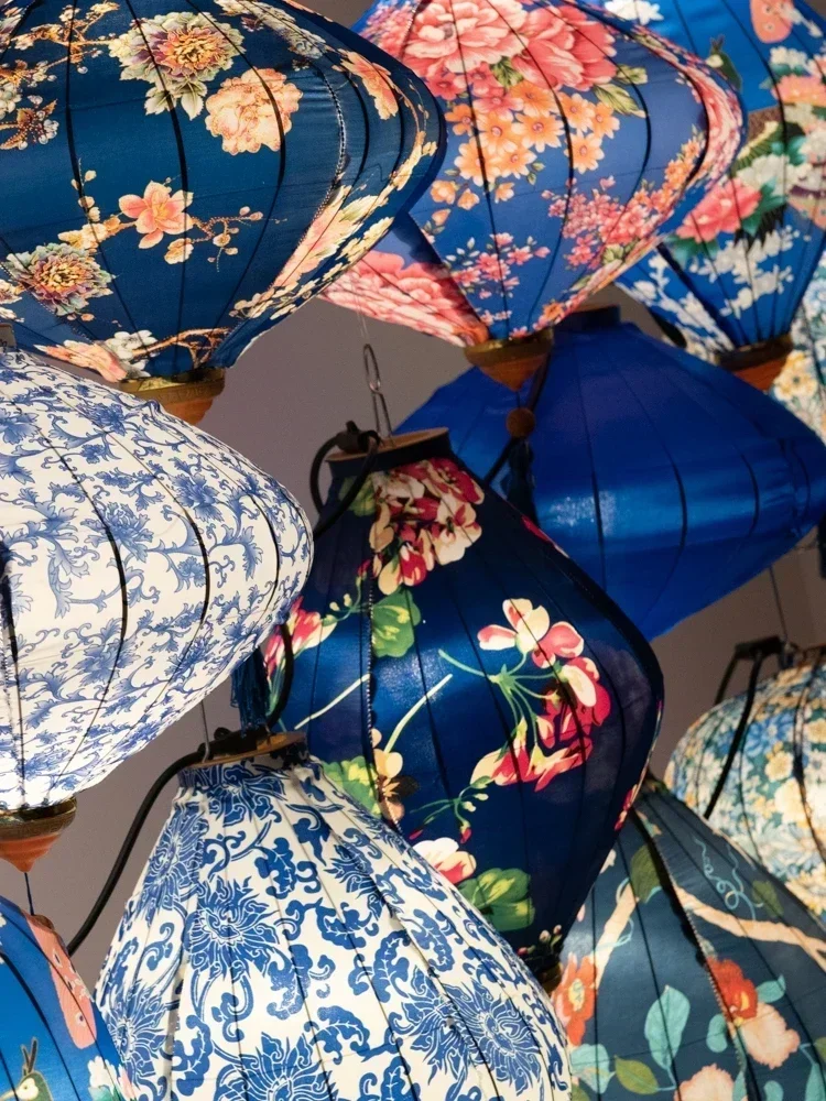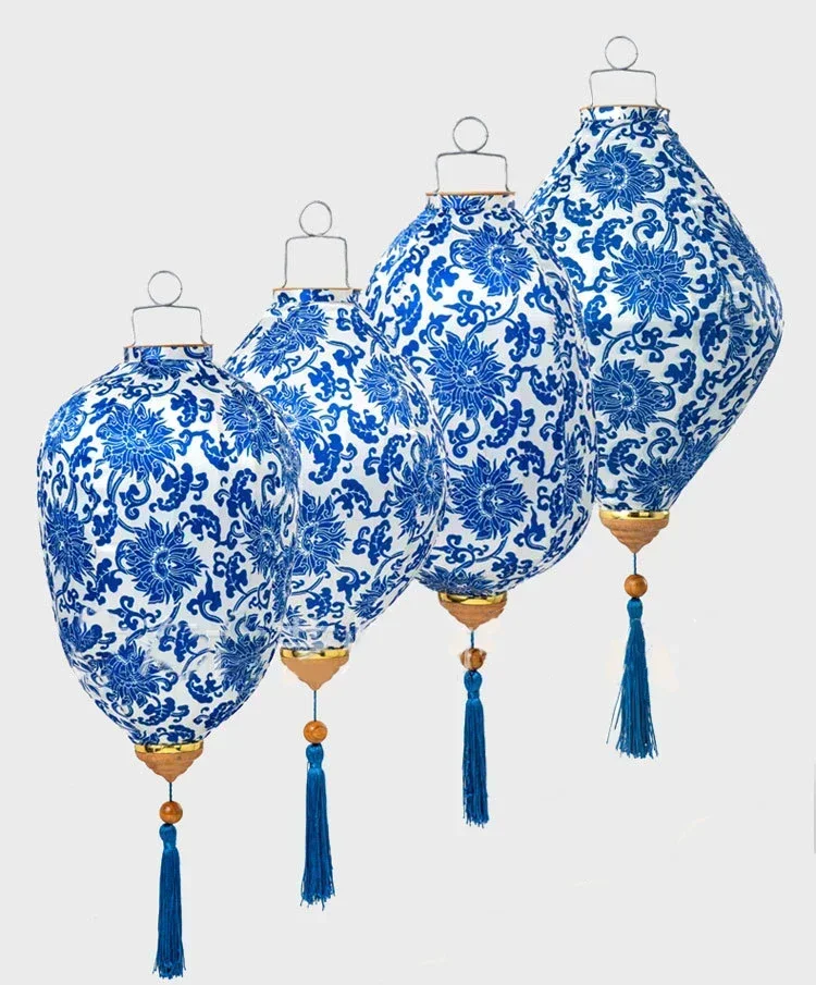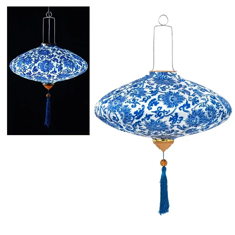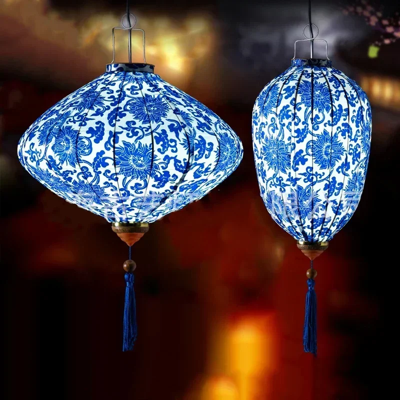12/14 Inch Chinese Style Hanging Lantern Blue-And-White PorcelainPerformances New Year Party Festival Outdoor Decoration Lantern