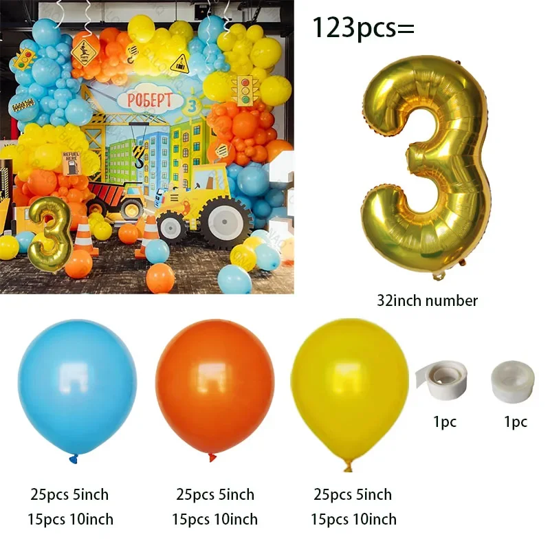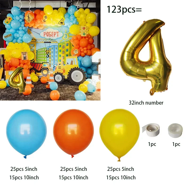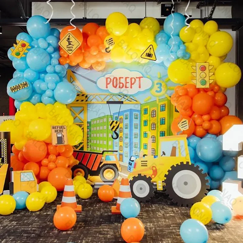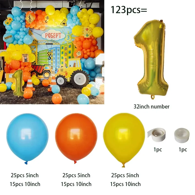 123pcs Construction Themed Balloon Carton Vehicle Balloon Excavator Forklift Crane Balloon for Boy's Construction Birthday Party