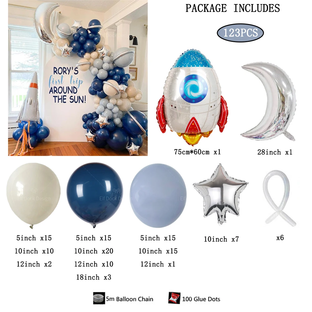 123pcs Galaxy Outer Space Themed Astronaut Rocket Balloon kit Birthday Party Anniversary Decoration Supplies Baby shower