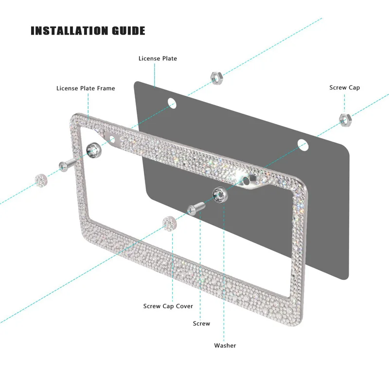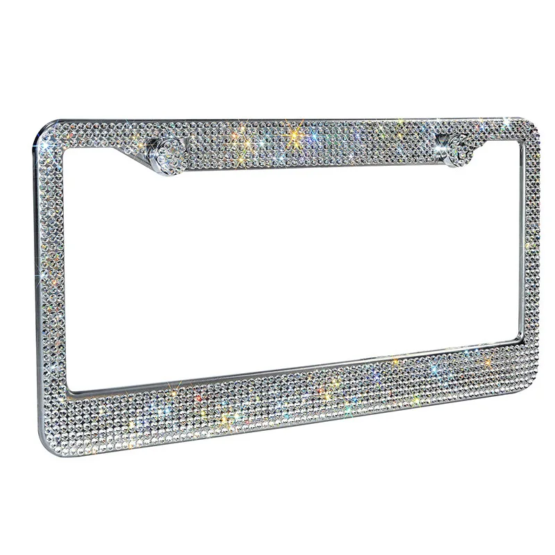 2 Pack Luxury Handcrafted Bling Rhinestone Premium Crystal Car License Plate Frame For USA Canada Truck Women Grils Accessries