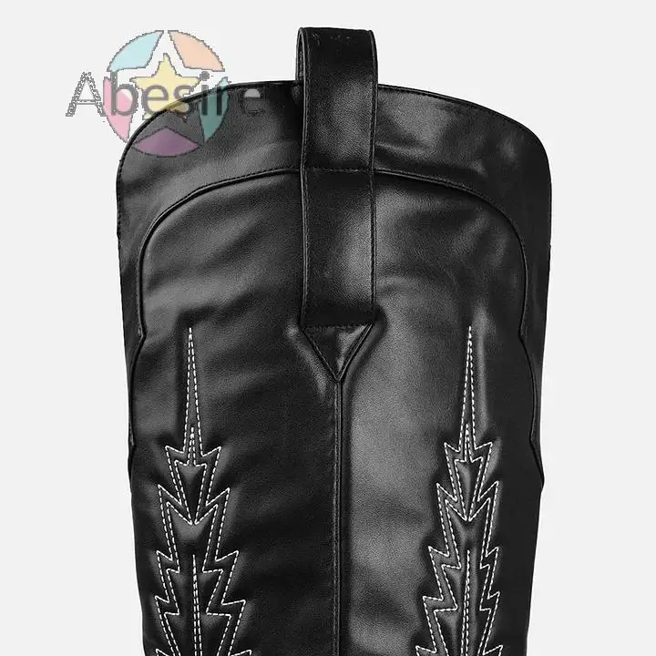 2024 New Women's Sexy Black Pointed Toe Chunky Heel Embroidered Over-The-Knee Cowgirl Boots Side Zipper Modern Long Boots