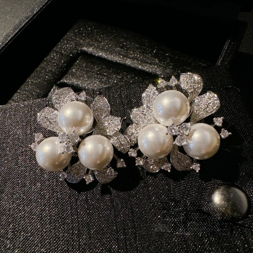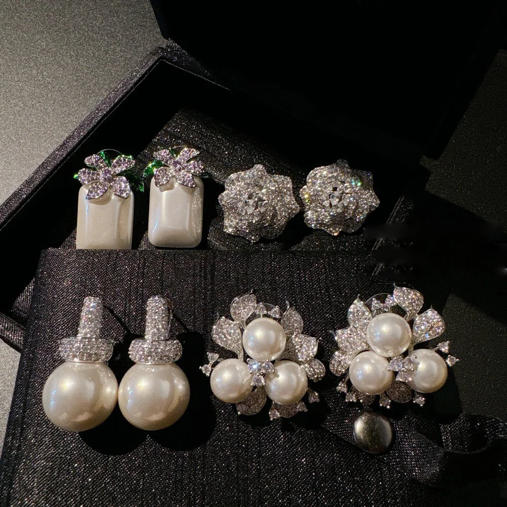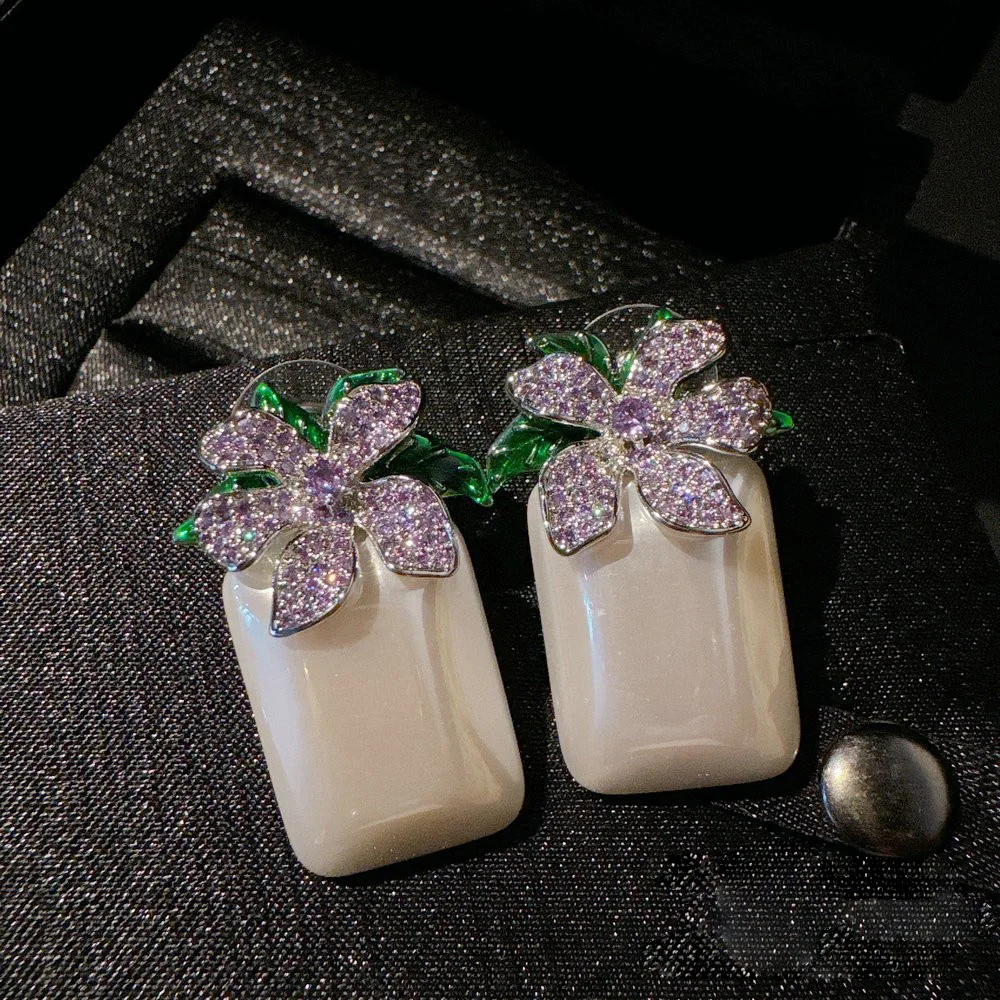 2024 Women Rich Flower Lavender Zircon Pearl Gemstone Earrings