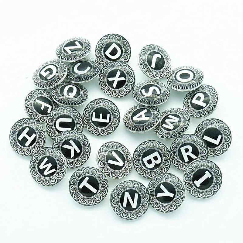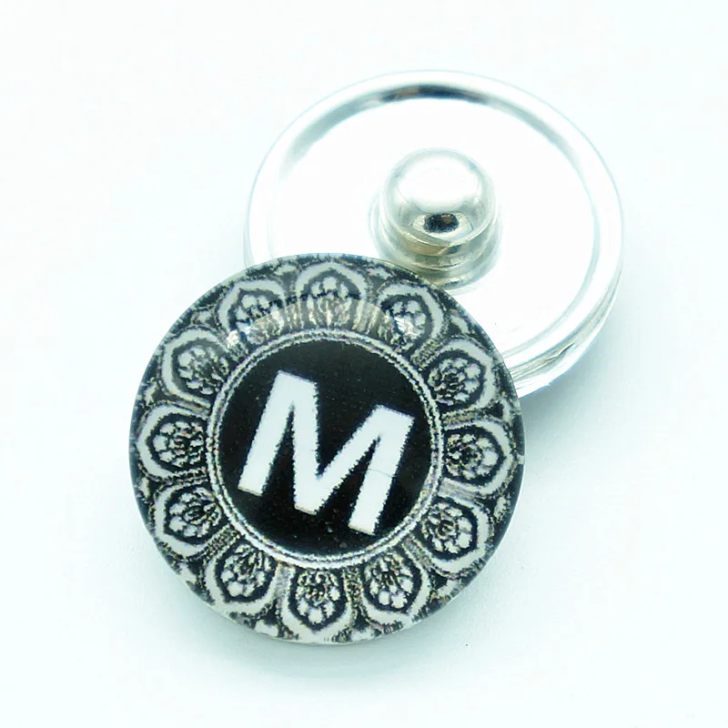26pcs 18MM 26pcs A-Z Alphabet Letters glass cabochon snap buttons fit DIY snap bracelet jewelry Photo snap NB0014
