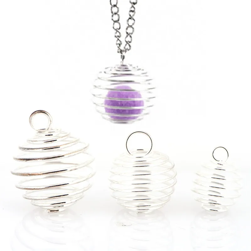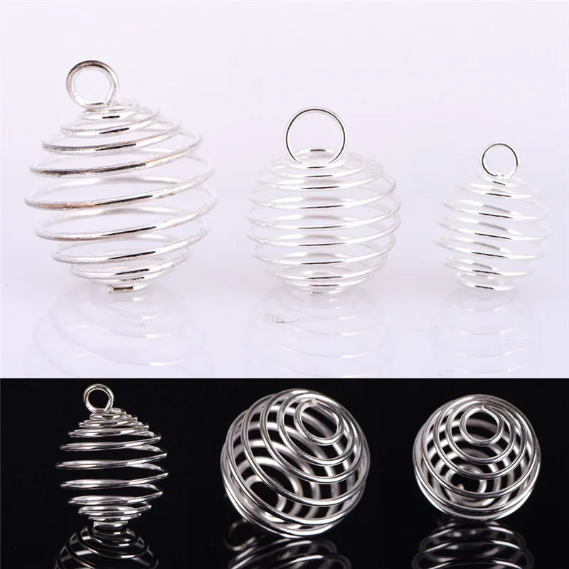 30PCS/Set Spiral Bead Cages Pendants Silver Plated Craft Jewelry Making DIY Gift