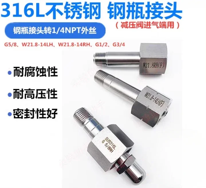 316L cylinder connector nitrogen air hydrogen G5/8 to NPT1/4 adapter W21.8-14 thread