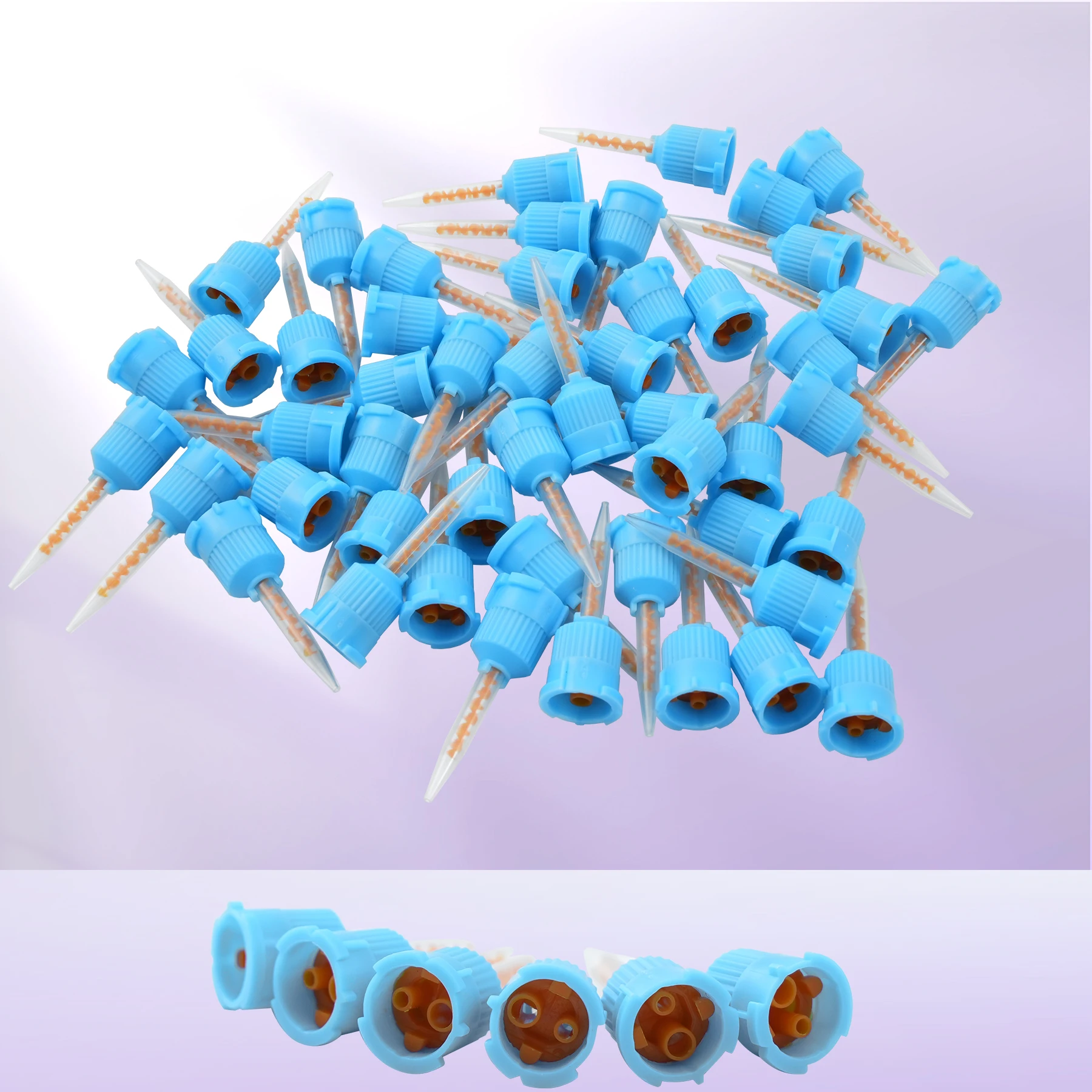 50pcs Blue Short Dental Mixing Tips 4:1 Disposable Silicone Rubber Gun Conveying Mixing Head For Impression Material