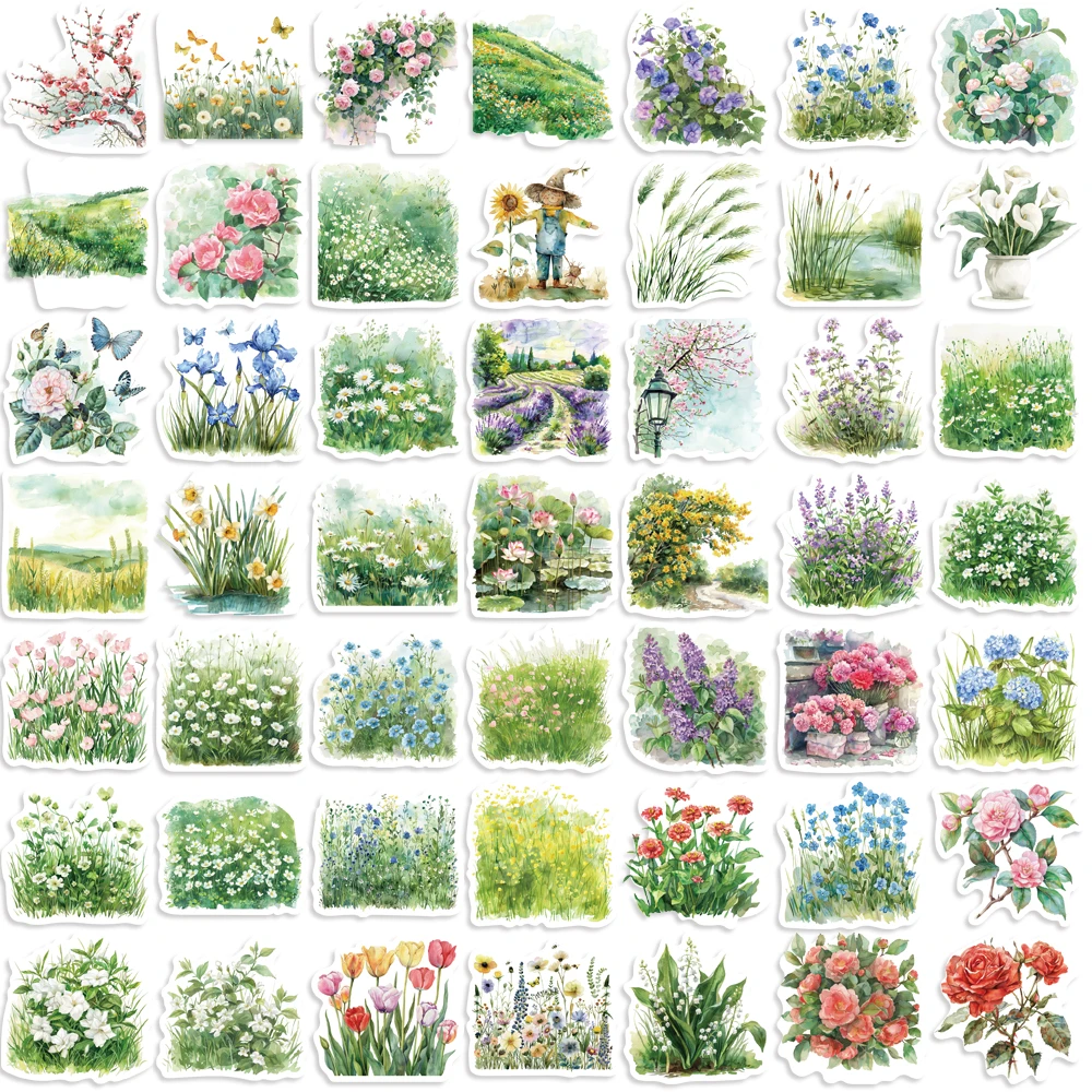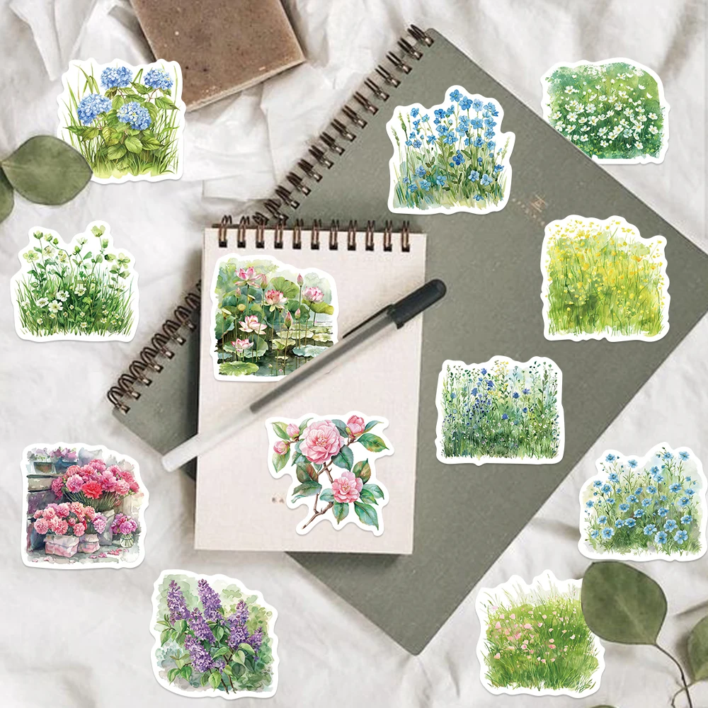 50pcs Watercolor Summer Flower Stickers Laptop Suitcase Graffiti Skateboard Luggage Waterproof PVC Stickers Kids Gift Toys