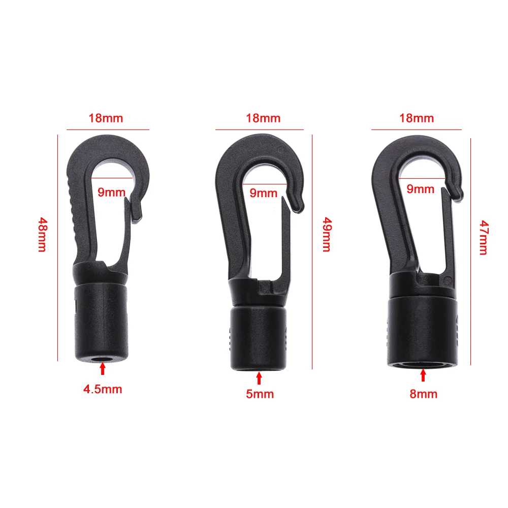 5Pcs Plastic Bungee Shock Tie Cord Ends Rope Buckles Safe Lock Kayak Fishing Canoe Clothesline Hooks POM Snap Hook Clip