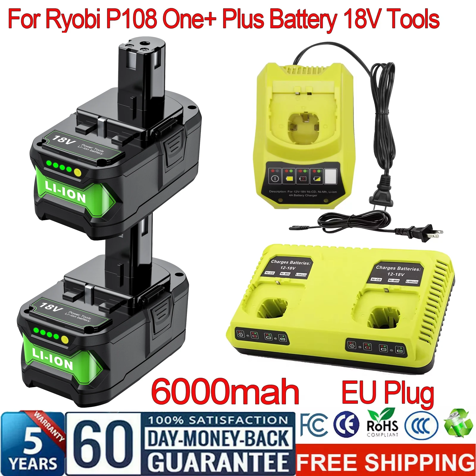 6Ah For RYOBI 18V One+ Plus Lithium-Ion Replacement For Ryobi P108 P107 P108 RB18L50 RB18L20 Power Tool Rechargeable Battery