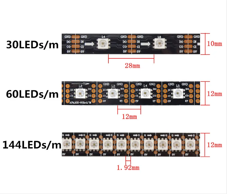 APA102 strip 30/60/144 leds/pixels SK9822 Smart led pixel strip DATA and CLCK seperately DC5V IP30/IP65/IP67