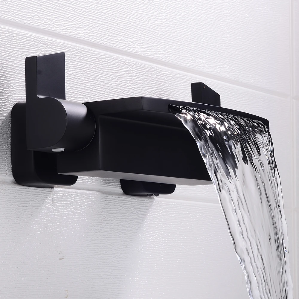 Becola Black Bathroom Waterfall Tub Faucet Deck Mount Dual Handle Brass Bathtub Shower Faucet Mixer Tub Tap