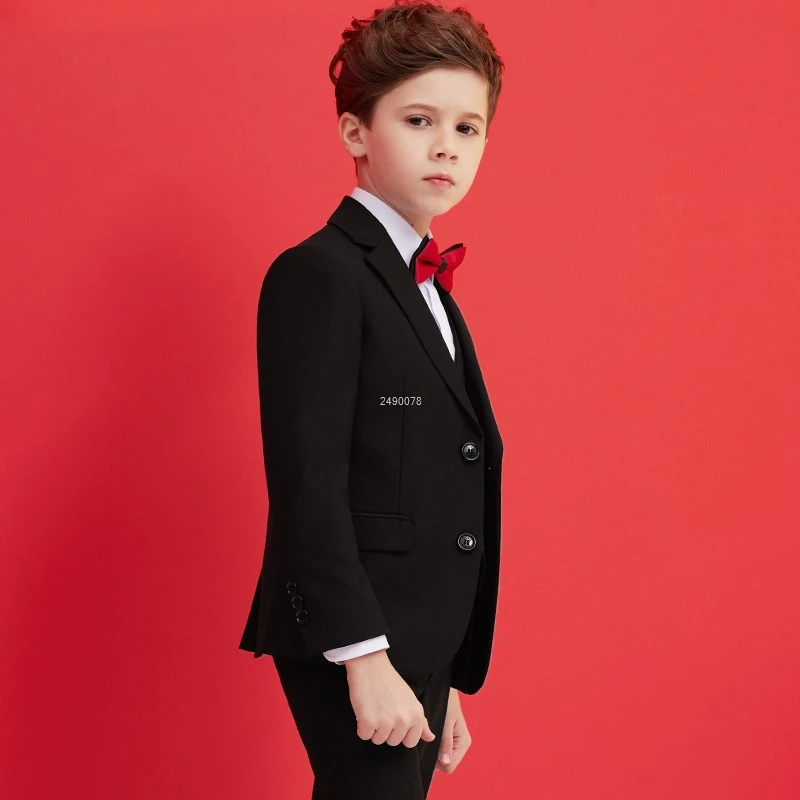 Boys Black 007 Wedding Suit Kids Formal Blazer Clothing Set Gentleman Children Day Graduation Chorus Performance Dress Costume