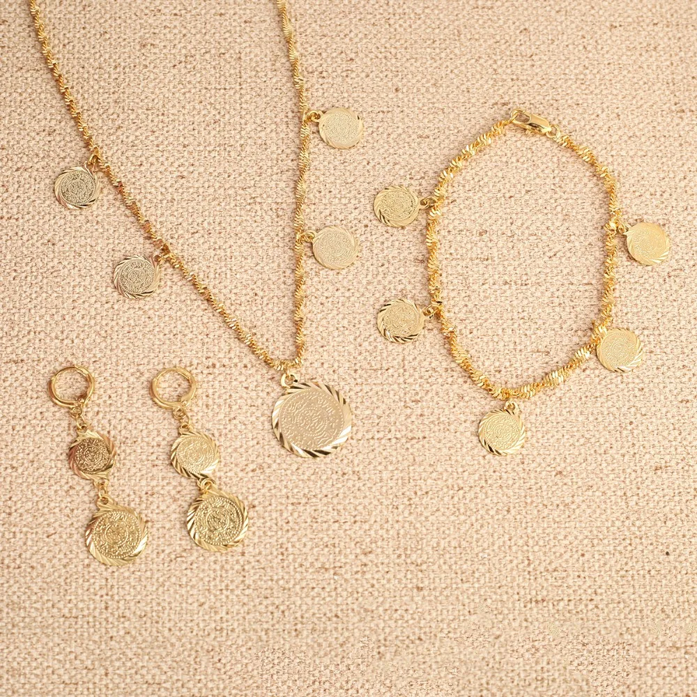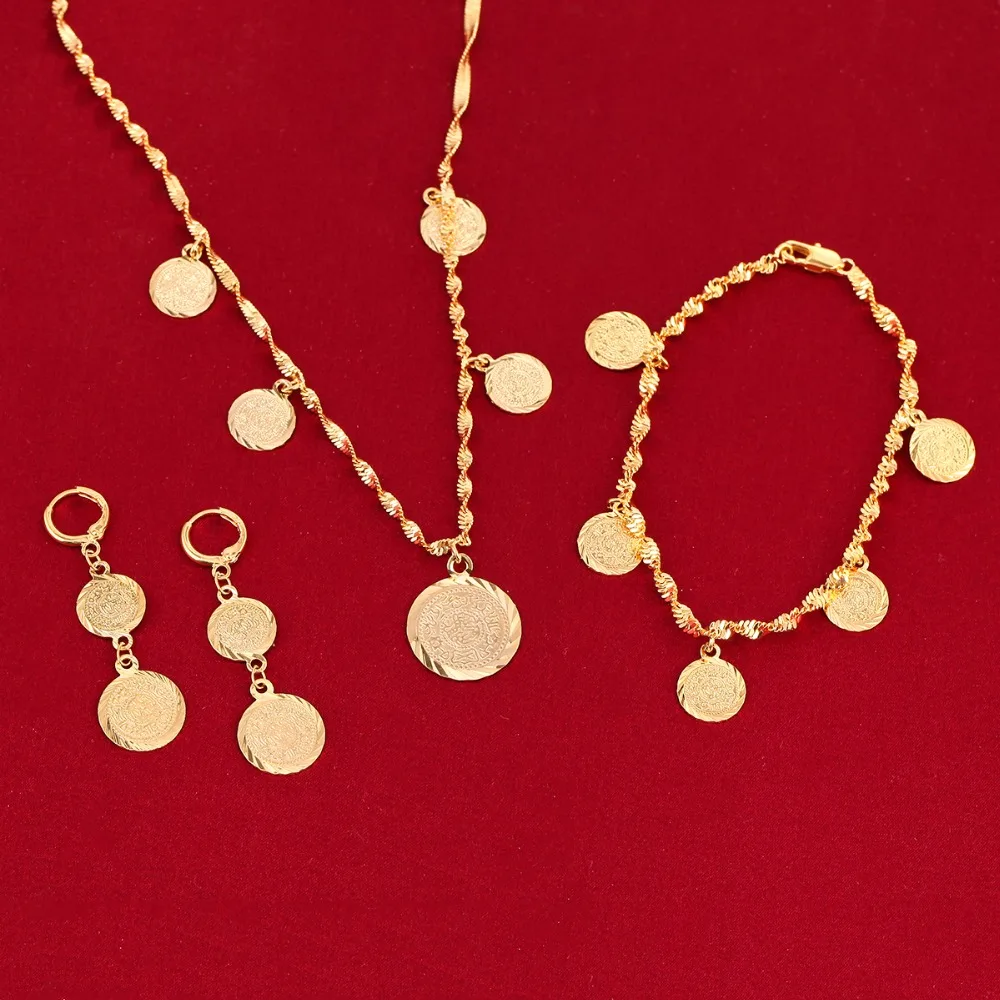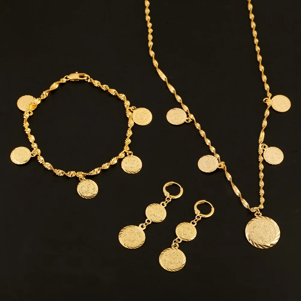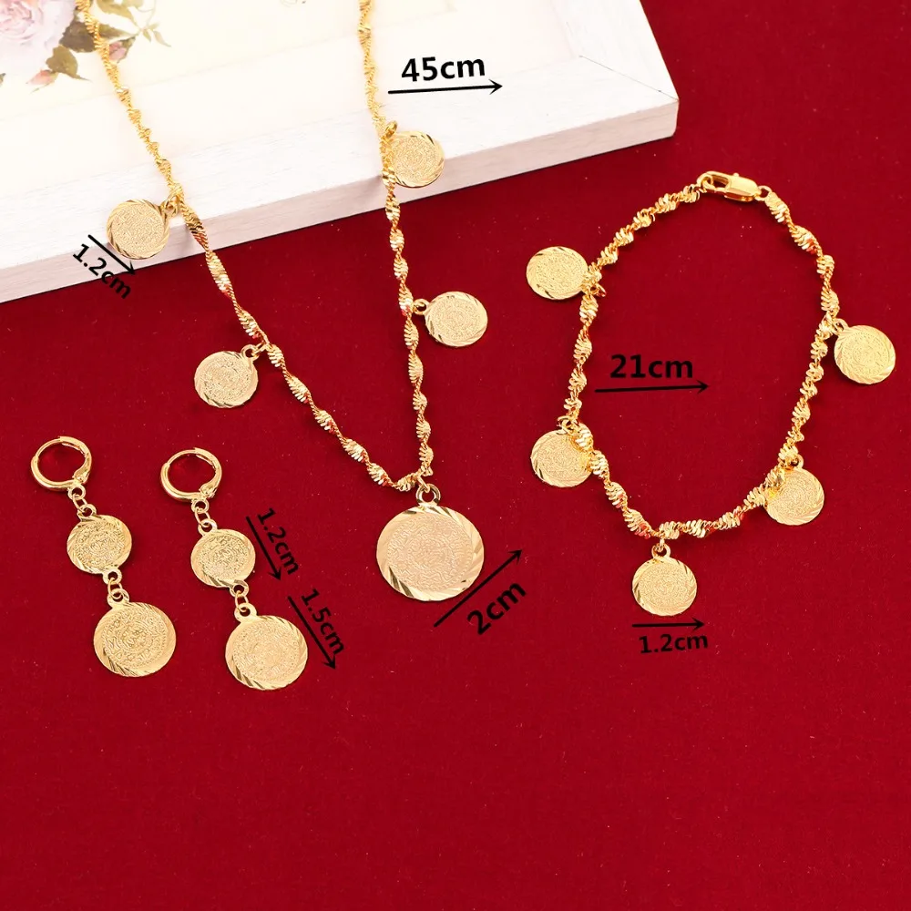 Bracelet Necklace Earrings Set Germany Spain France Coin Money Sign Women 24k Gold Color Filled Arab Africa Europe Jewelry