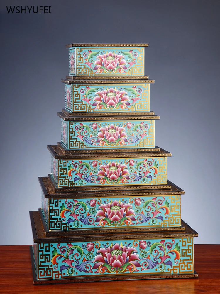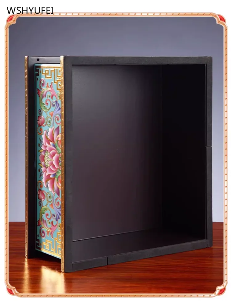 Buddha statue base Elevated cushion Buddha platform Enamel colored square Guanyin Bodhisattva Wealth God alloy lotus bracket