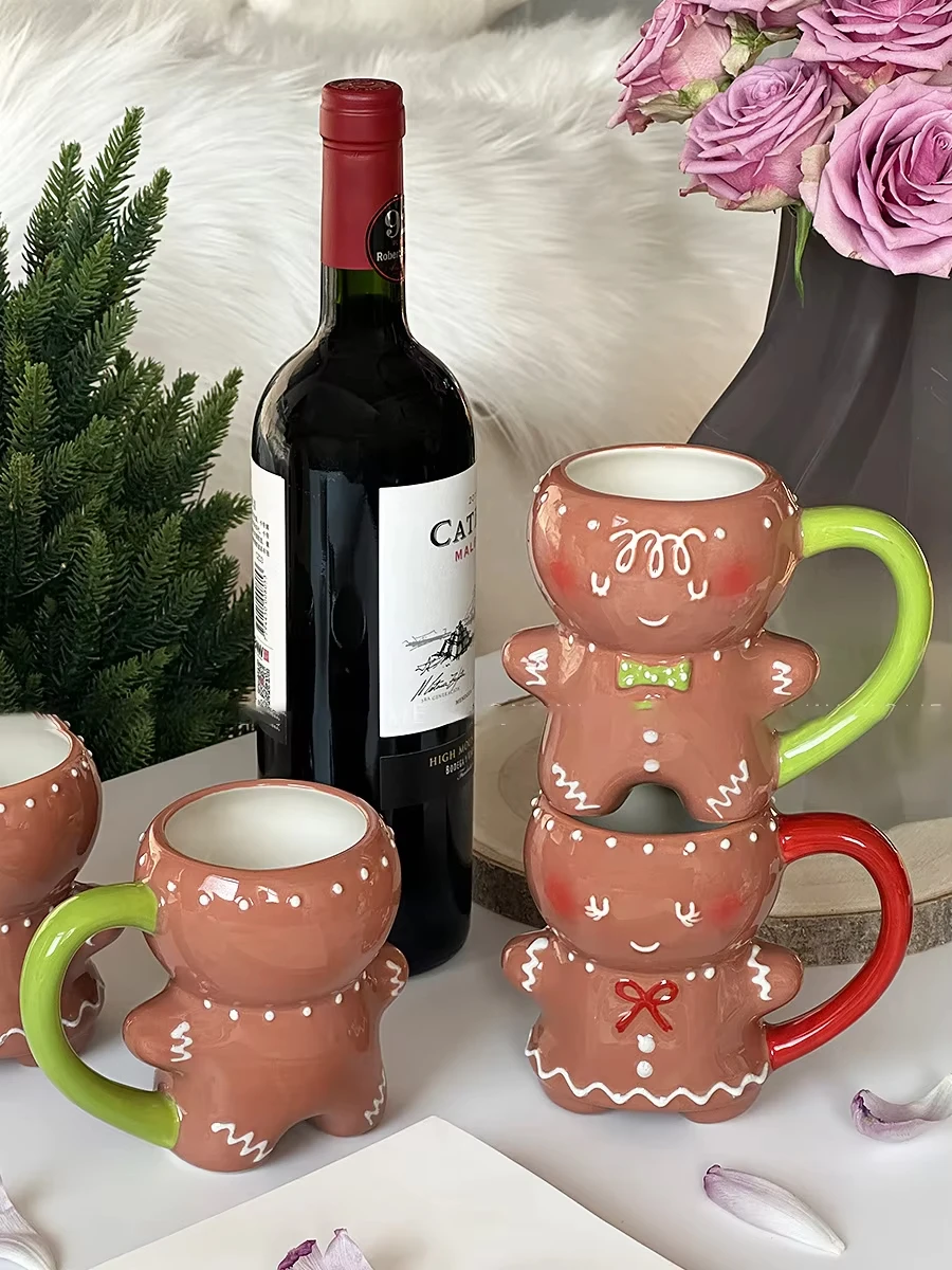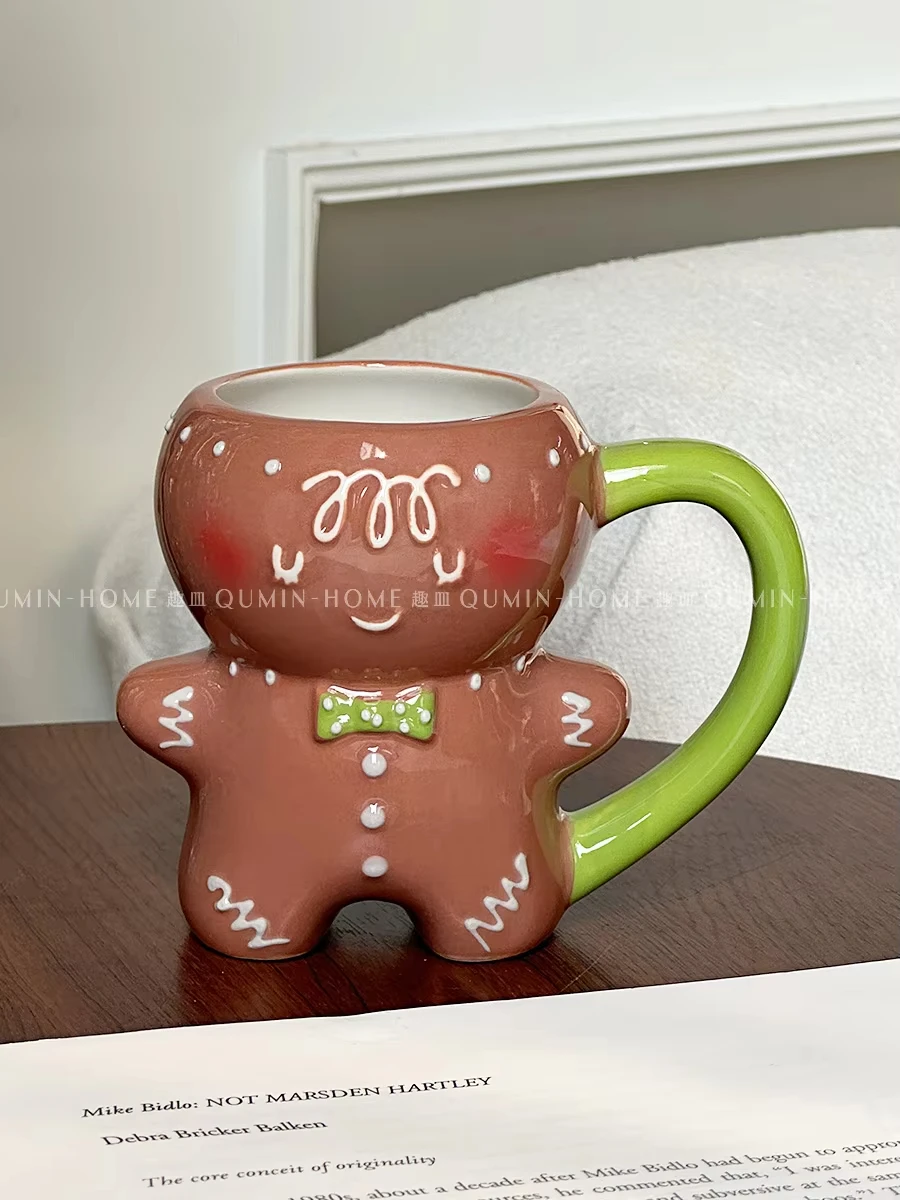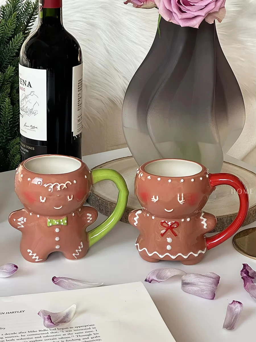 Cartoon Cute Christmas Gingerbread man Ceramic Coffee Cup Mug Couple Ceramic Water Cup Teacup Juice Drink Mug Small Gift