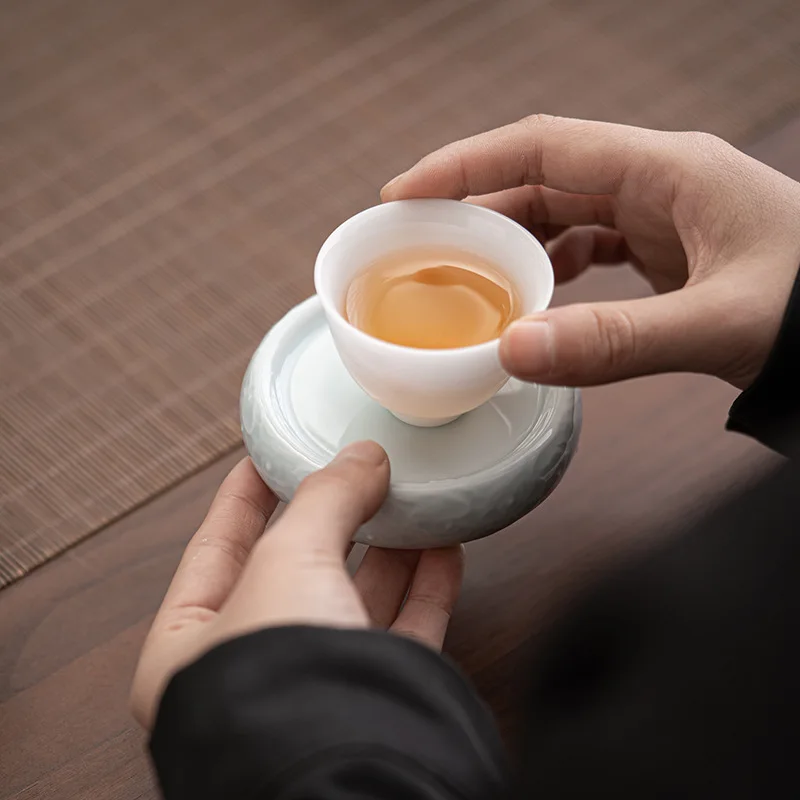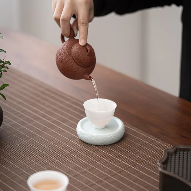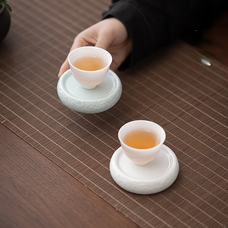 Chinese Auspicious Cloud Ceramic Teapot Lid Holder Hand-carved Cover Holder Heat Insulation Tea Cup Coaster Mat Kung Fu Tea Set