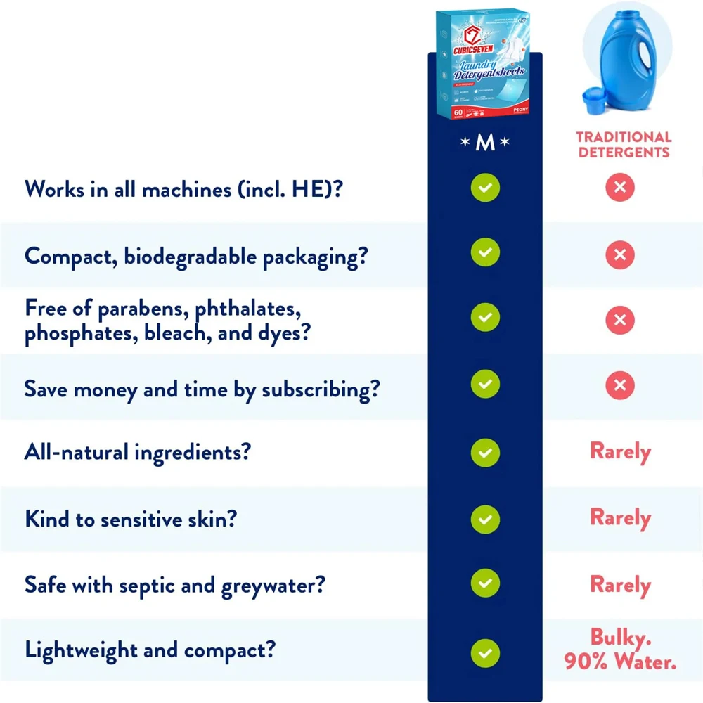 Cubicseven 60PCS Laundry Tablets Strong Decontamination Laundry Detergent Sheet Anti-String Mixing Color Absorption Washing Soap