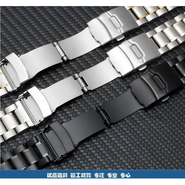 Curved End Watch Band 18mm 20mm 22mm 24mm Replacement Watch Strap Double Lock Clasp Stainless Steel Watchband with Tools
