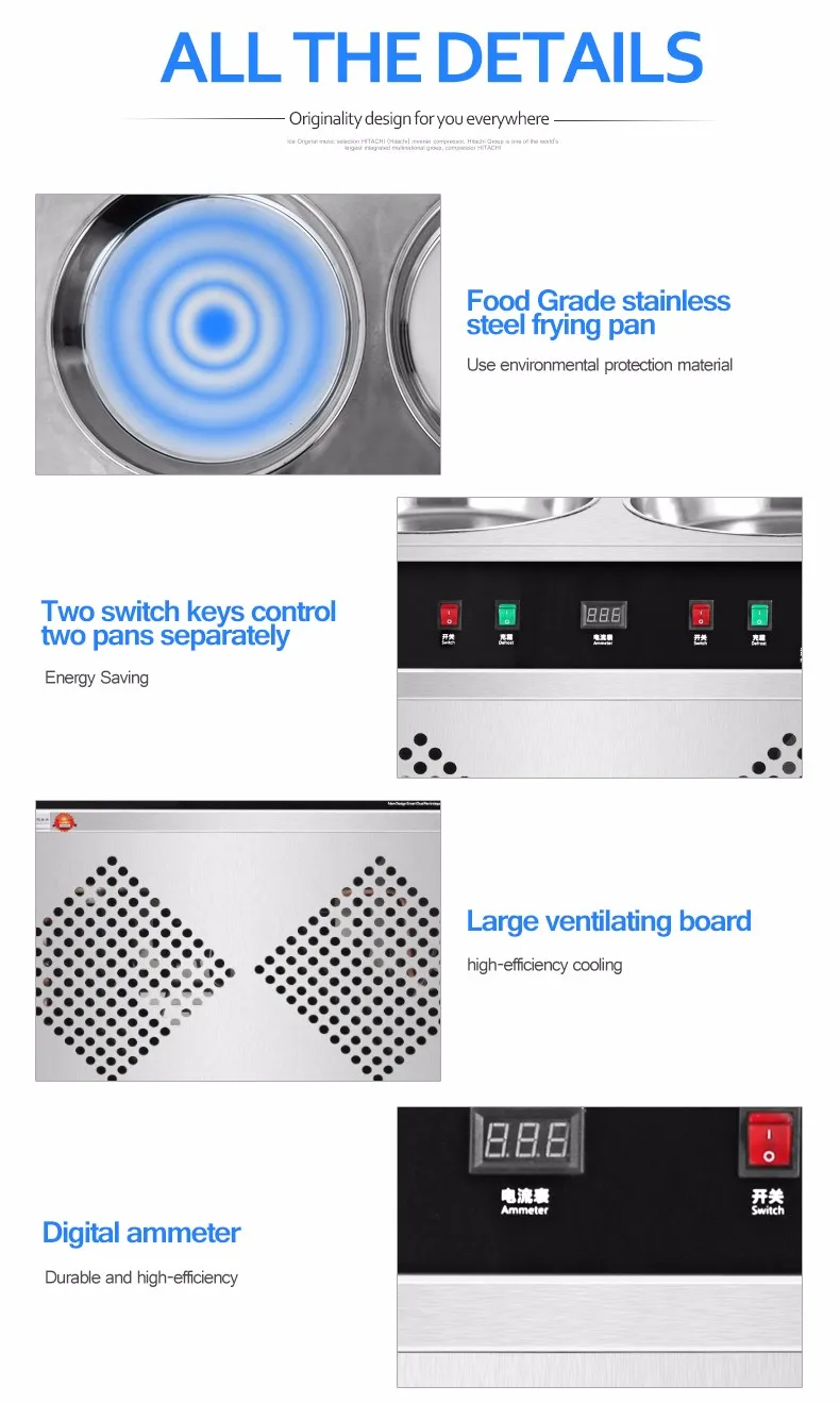 Double Rectangle Pan Thailand Rolled Fried Ice Cream Machine 830*440*700mm