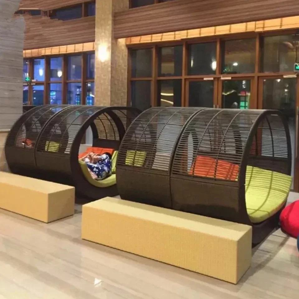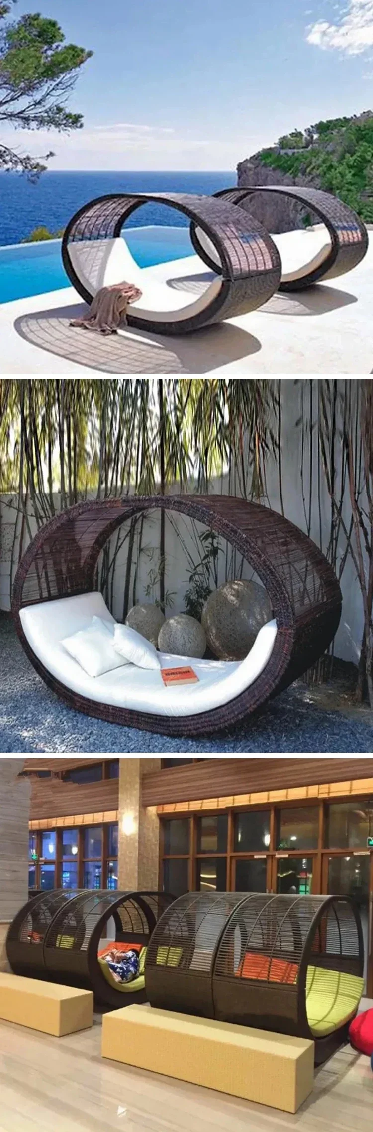 Eco-Friendly Day Bed Rattan Beach Sun Chaise Outdoor Furniture Wicker With Canopy Round Lying Tent Daybed