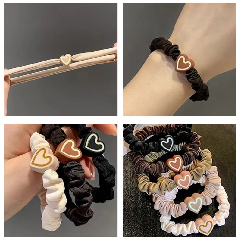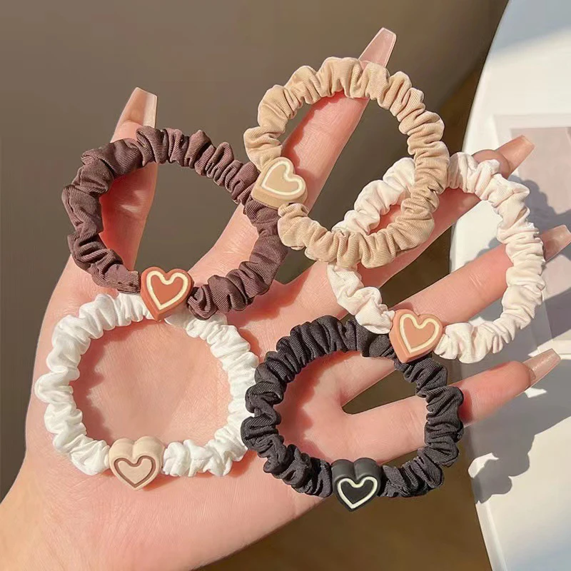 Elegant Women Heart Hair Scrunchie Elastic Rubber Bands Hair Bands Cute Hair Ties Girl Ponytail Fashion Hair Accessories
