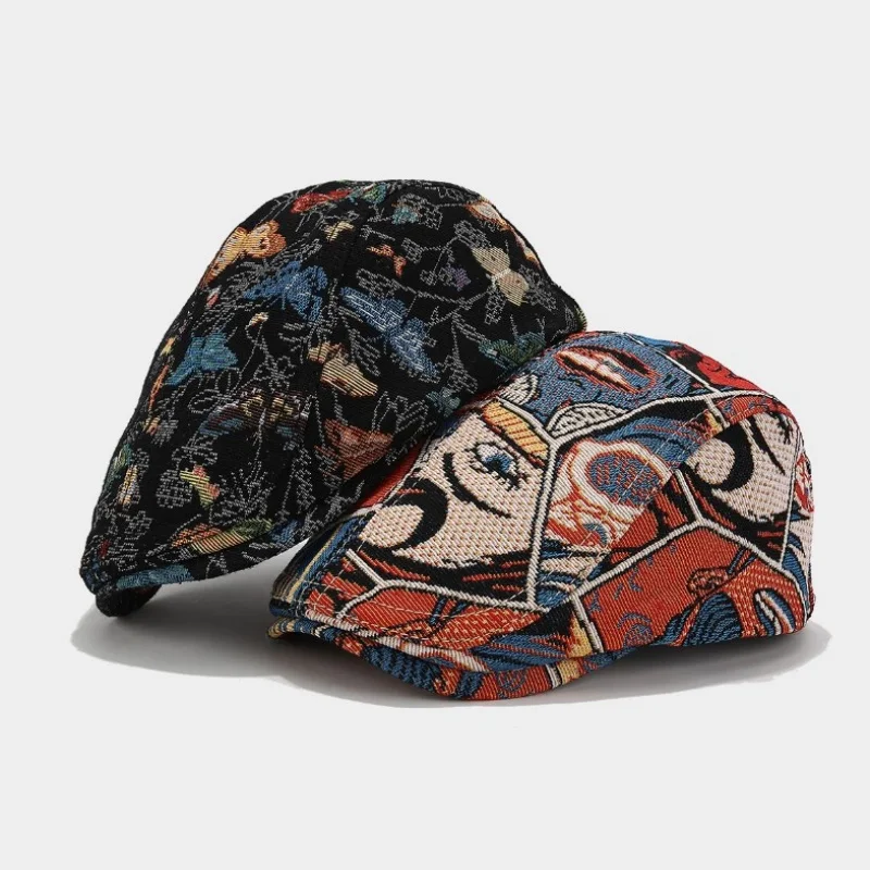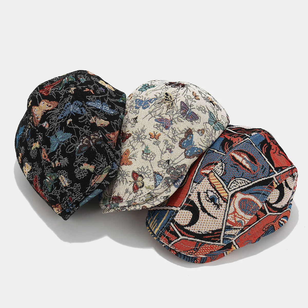 Fashion Vintage Butterfly Full Printing Jacquard Beret European American Leisure Reverse Wearing Newsboy Hat Unisex Artistic Cap