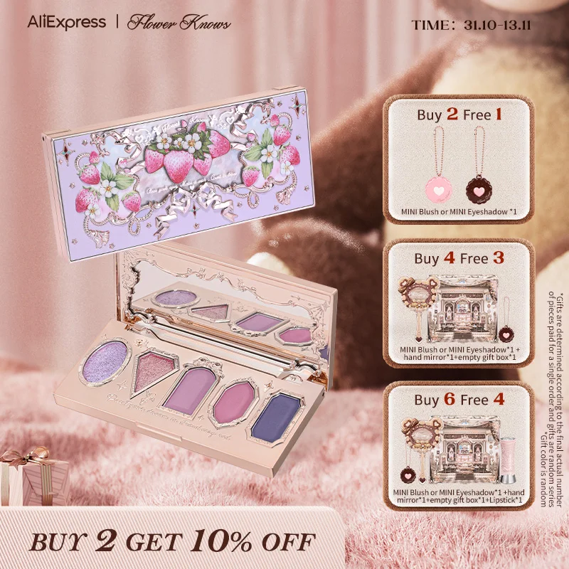 Get ready to save big with a fantastic 10% discount on Flower Knows Strawberry Rococo Series Five-Color Eyeshadow Palette. Elevate your Beauty & Health with exquisite selections at a great value. This limited-time offer allows you to indulge in high-quality Makeup while enjoying considerable savings. Shop now and elevate your collection!