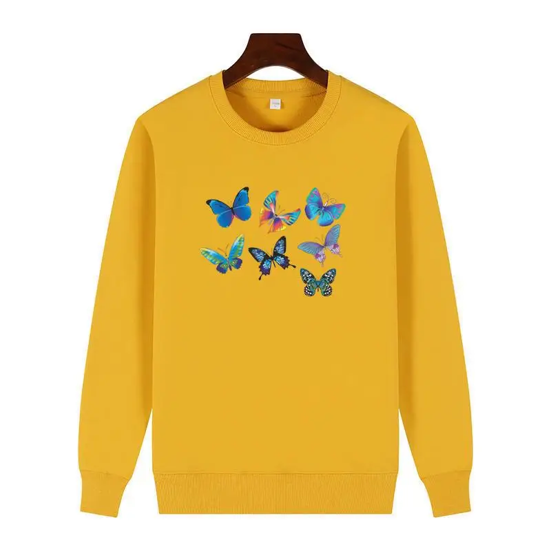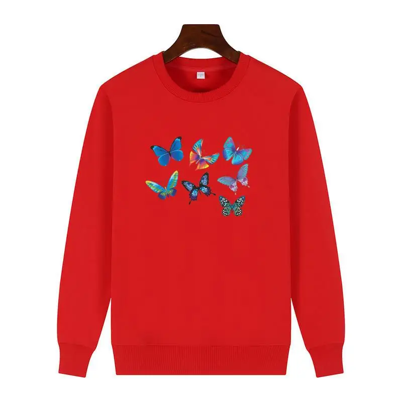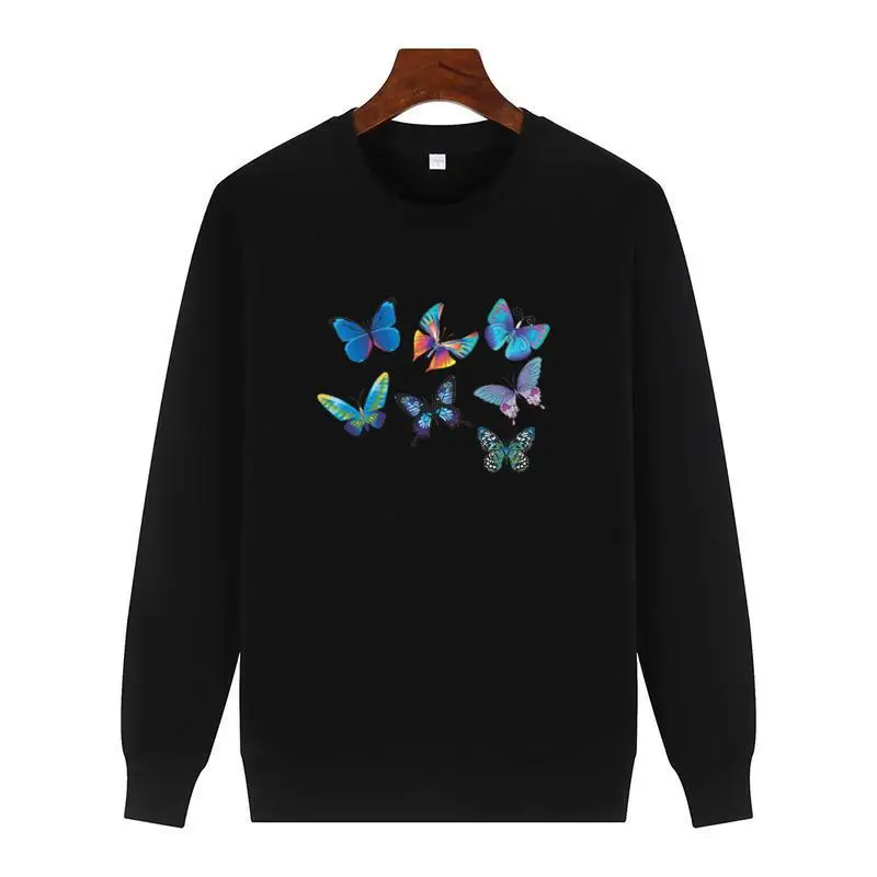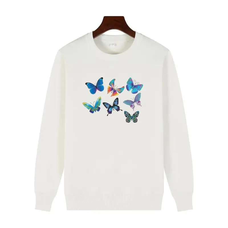 Flying Butterflies Harajuku Graphic Sweatshirts Winter Cotton Thick Sweater Hoodie Round Neck And Velvet Hoodie Men's Sportswear
