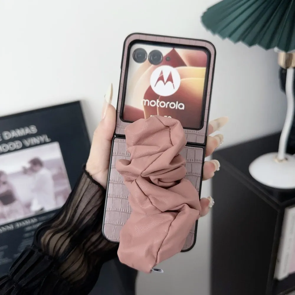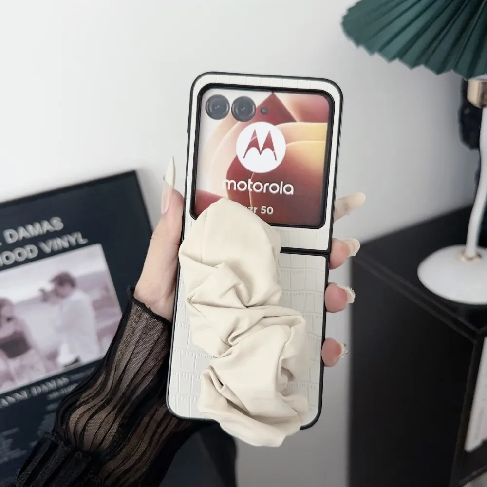 For Motorola Razr 40 50 60 Ultra Case Luxury Faux Leather With Strap Folding Shockproof Protection Hard Back Cover Accessories