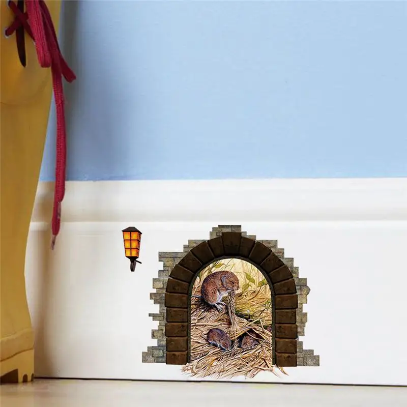 Funny 3d Mouse Hole Wall Stickers For Kitchen Bedroom Baseboard Home Decoration Diy Cartoon Animals Mural Art Pvc Rat Decals