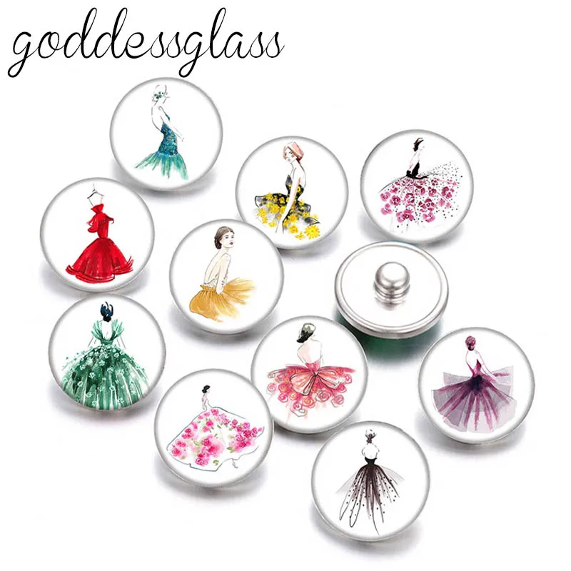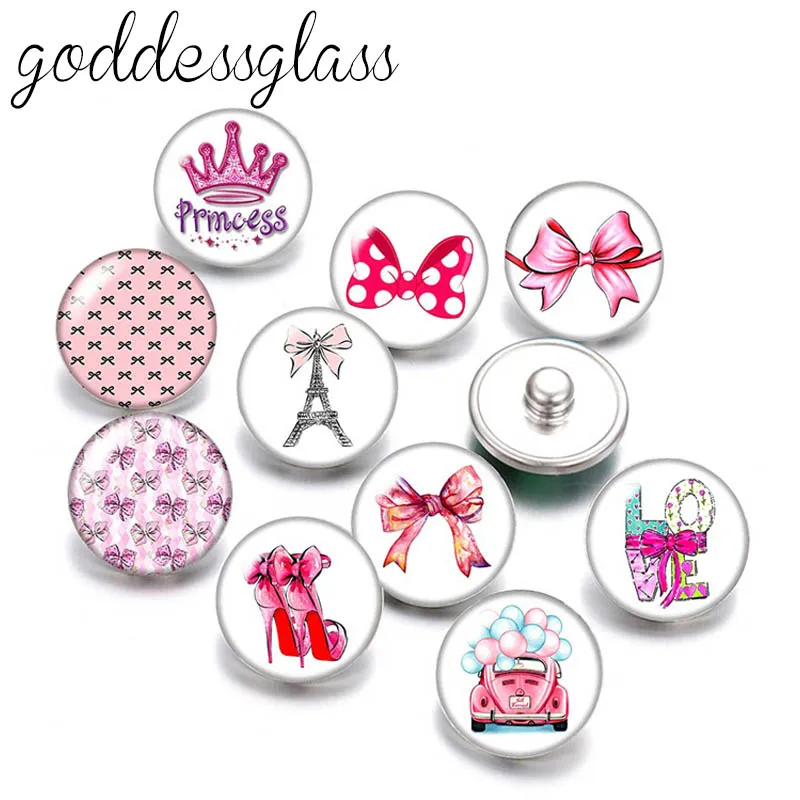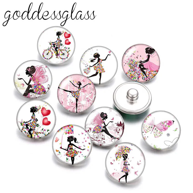 Girl Face Fairy Girl Dancing Flying drawing Girls Pink Bow 10pcs mix Round photo 12mm/18mm snap buttons DIY findings