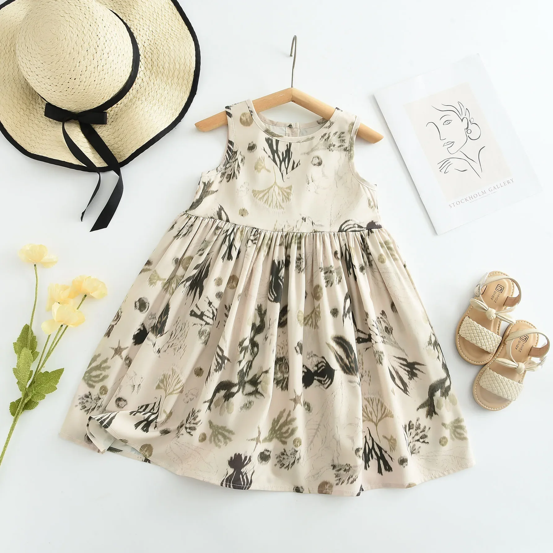 Girls Casual Dresses Floral Print Sleeveless Dress Flower Girl Dresses Kids Clothes for Girls 3 To 7 Years Toddler Girl Clothes