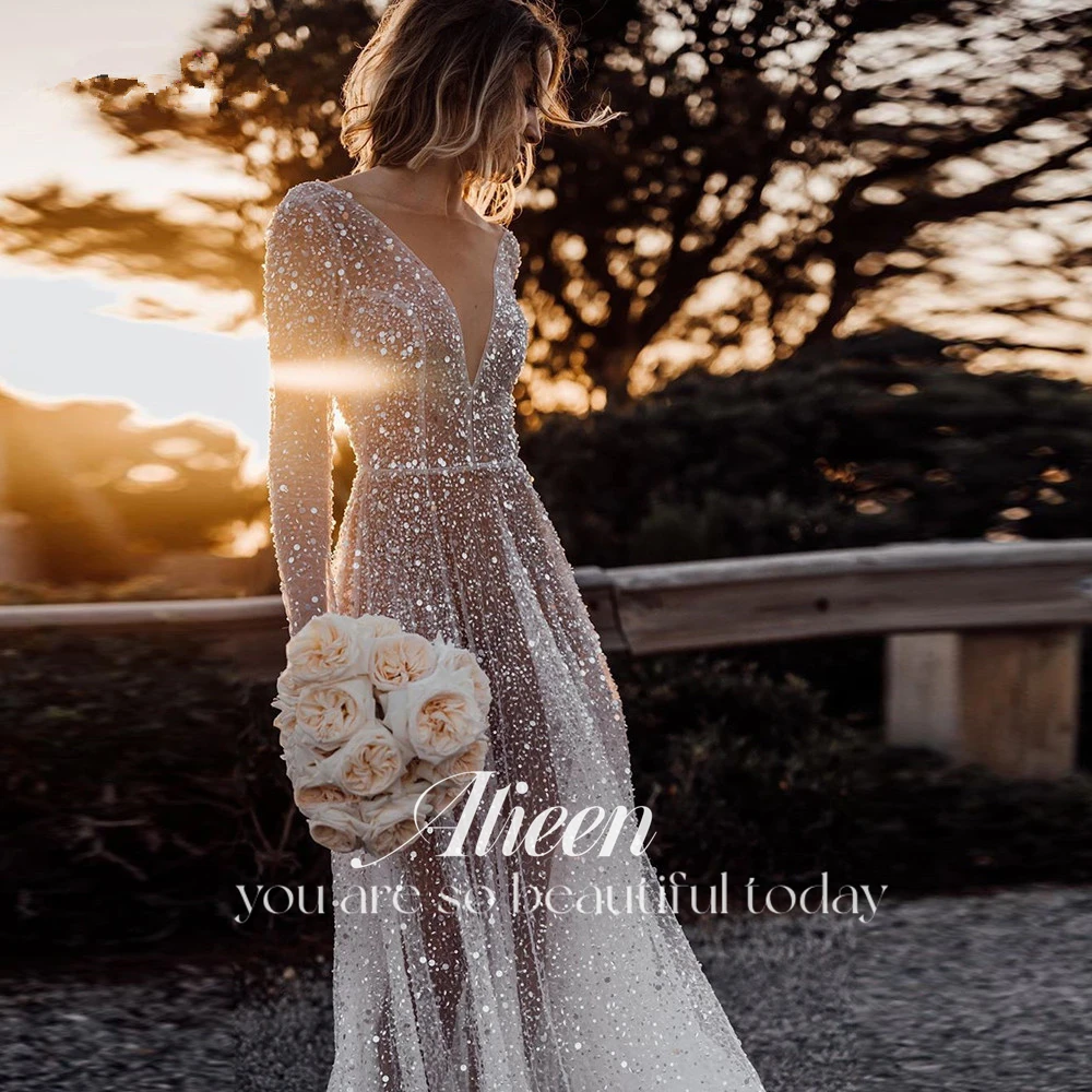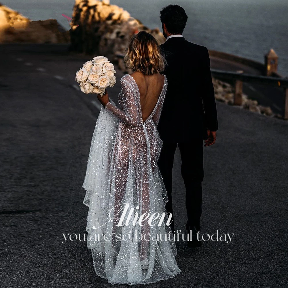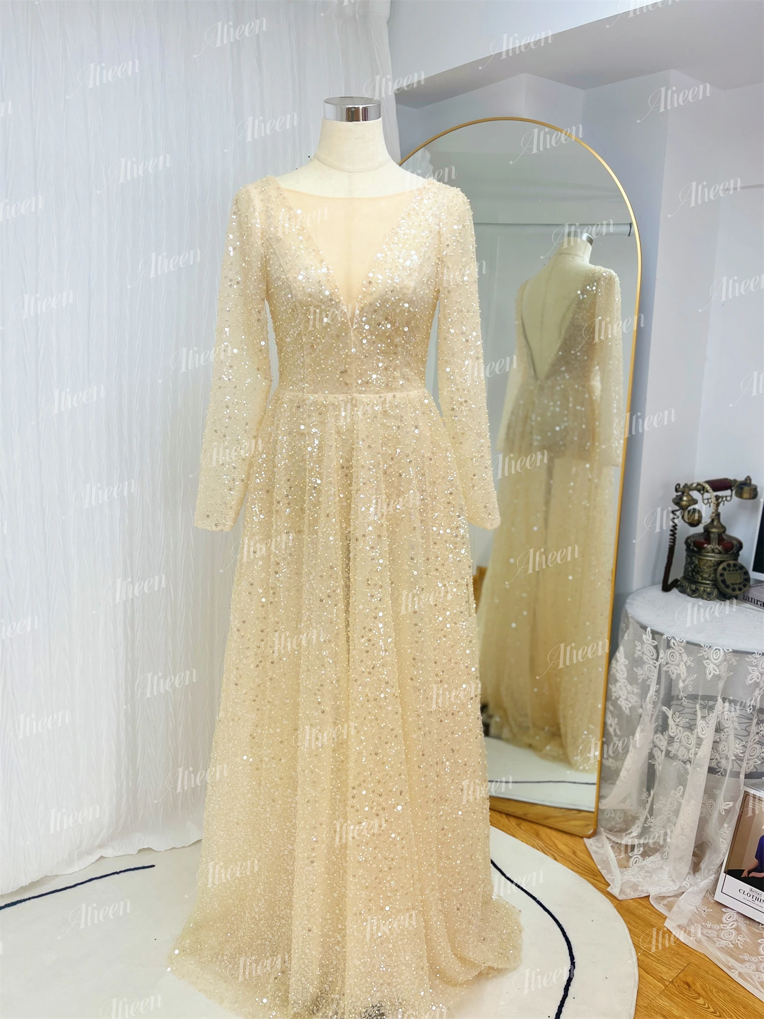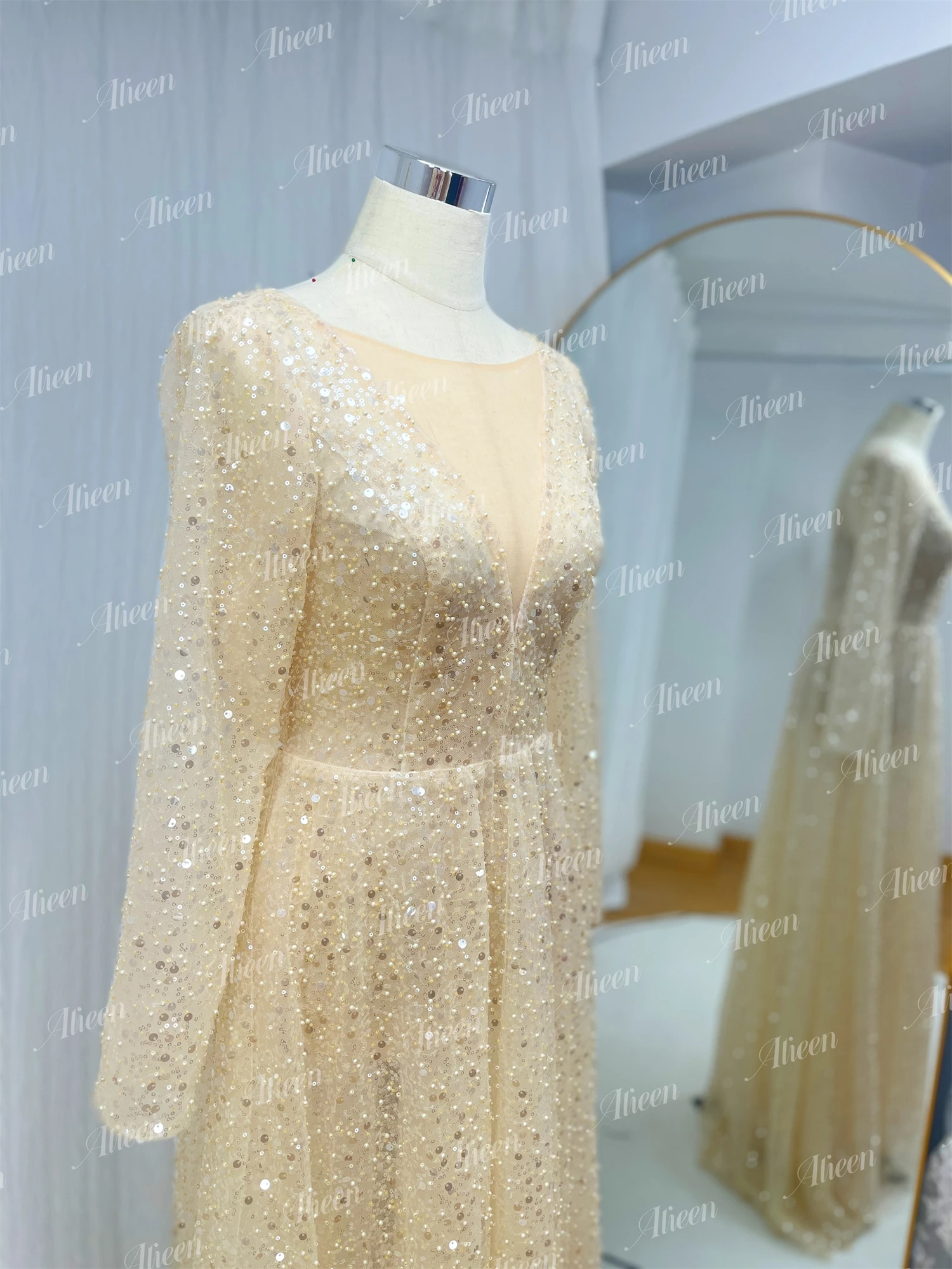 Glitter Sequins A-line Prom Dress Luxury Beaded Evening Dress Sexy Open Back فستان سهرة Transparent Party Dress customized
