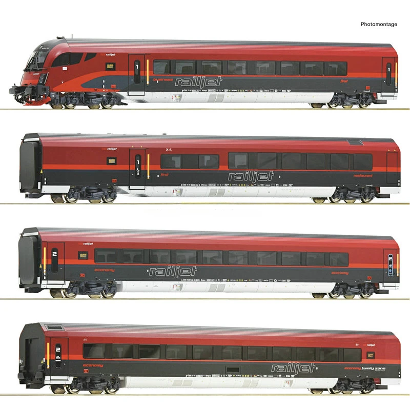 HO Type 1/87 Train Model ROCO 74038 Electric Hook Digital Lamp Passenger Car Four-section Suit RAILJET`