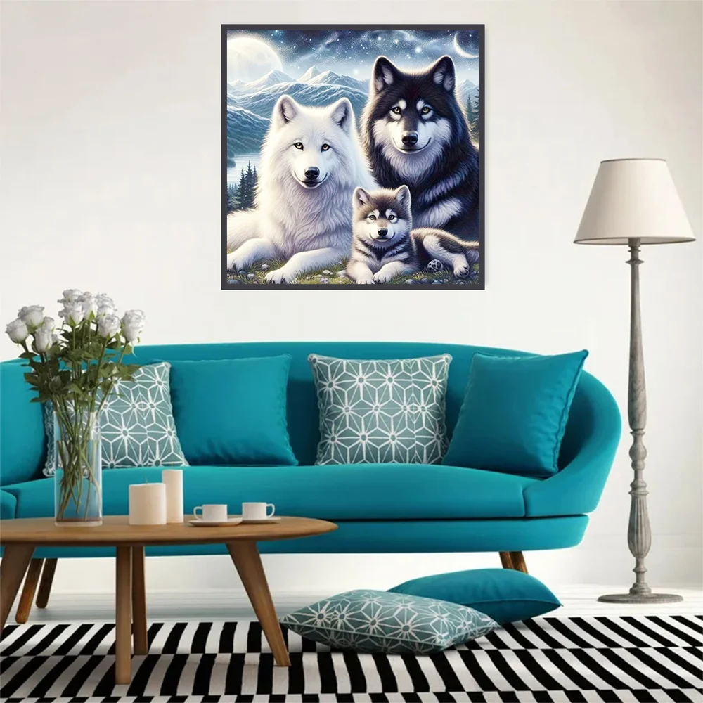 HUACAN Wolf Diamond Painting Moon Embroidery Mountain Full Square Round Drill Diamond Mosaic Animal Bedroom Decoration