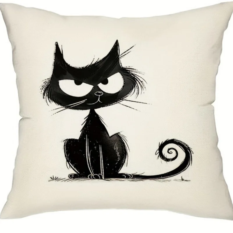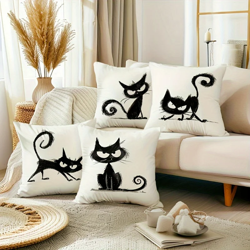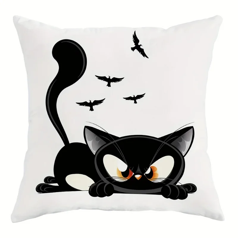 Halloween Cushion Cover Black Cat Throw Pillow Covers For Living Room Bedroom Sofa Decor Home Office Decorative Pillowcase Gifts