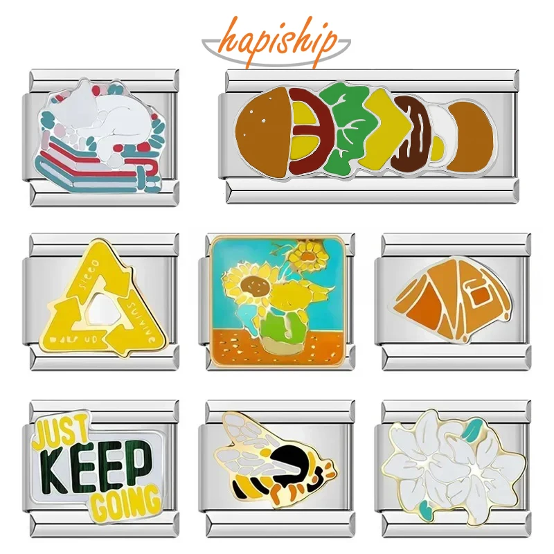 Hapiship 2025 Wholesale Star Love keep Sports Lcuk Italian Charm Fit 9mm Stainless Steel Bracelet Drop Shipping Jewelry DJ1441
