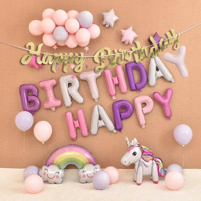 Happy Birthday Banner Bunting paper Birthday Party Hanging Garland Banner Baby Shower Decoration