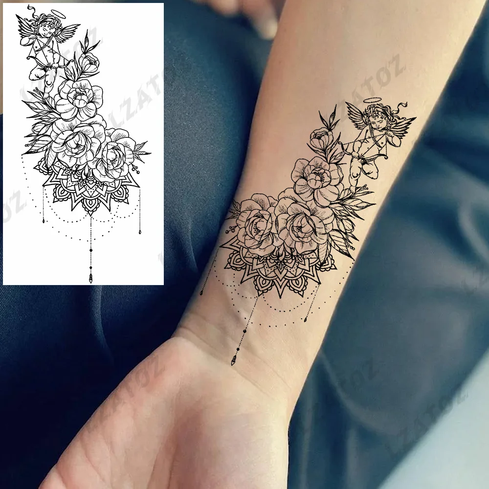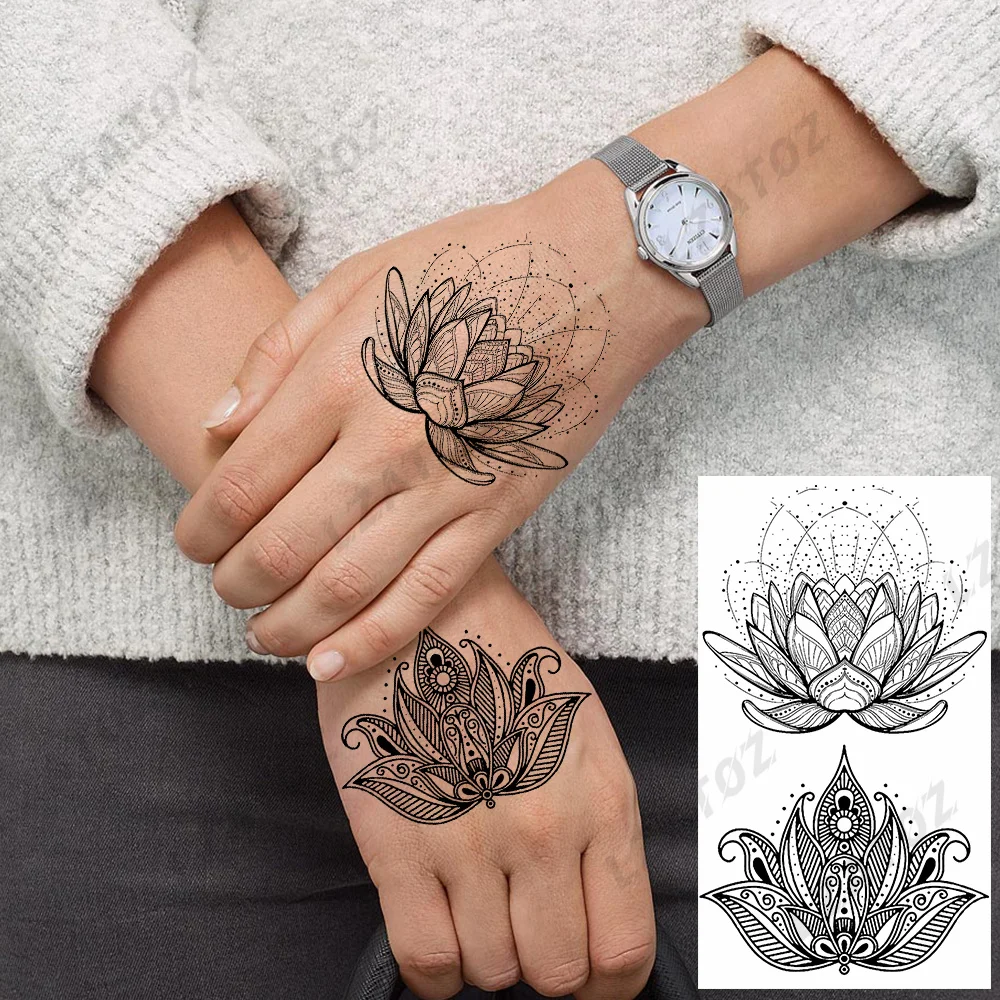 Henna Lotus Flower Temporary Tattoos For Woman Adults Realistic Mandala Pendant Fake Tattoo Sticker Hand Water Transfer Tatoos