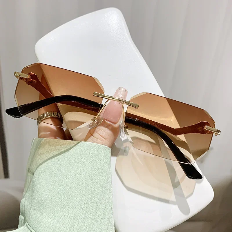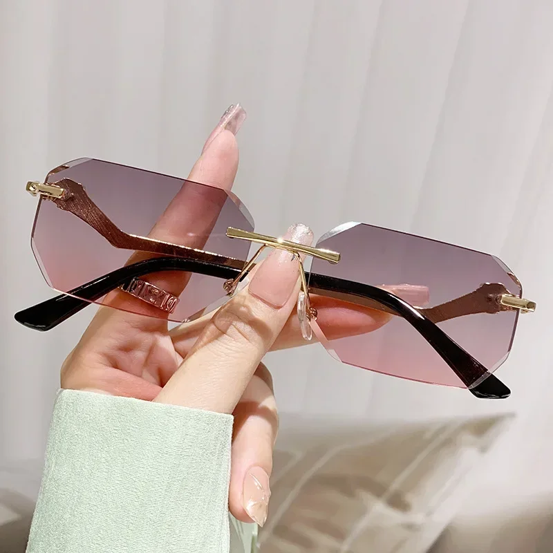 JNPCXI New Fashion Trending Small Rectangle Sunglasses Retro Metal Rimless Gradient Shades UV400