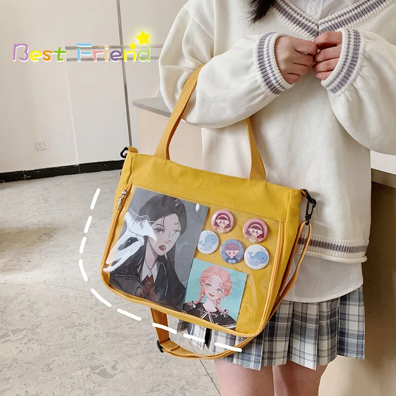 Japanese Harajuku JK Canvas Bag For Women Transparent Pocket Itabag Mochila High School Girls Uniform JK Crossbody Shoulder Bag