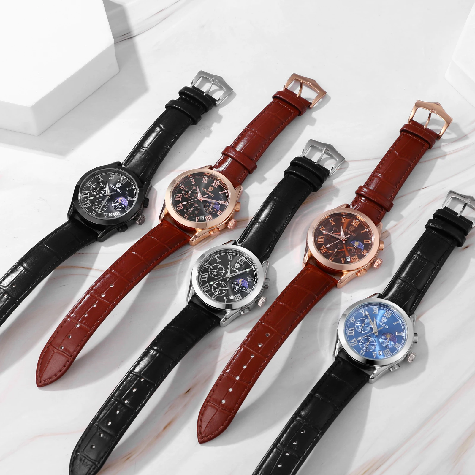 LANCARDO Three-eye Multi-functional Leather Watch Waterproof Glow-in-the-dark Hands Scale Timing Fashion Exquisite Men's Watch