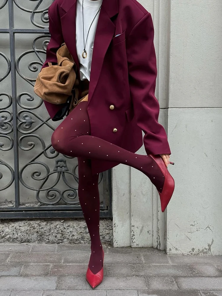 LYNETTE'S CHINOISERIE Spring Autumn Women Vintage Polka Dots Japanese Style Mori Girl Jacquard Velvet 100D Leggings Pantyhoses
