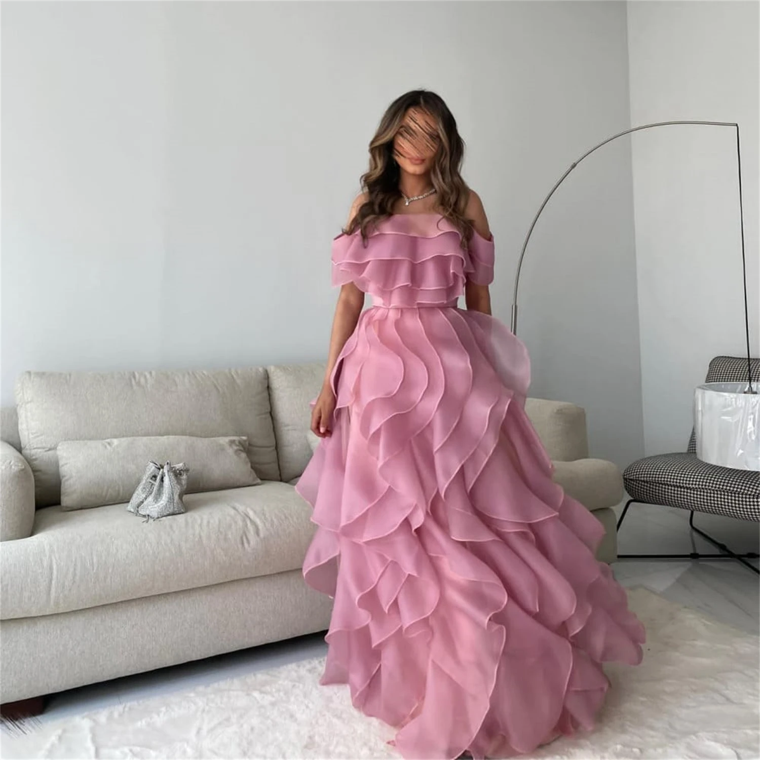Layered Long Luxury Evening Dresses 2025 Frills Prom Dress Pink Elegant Gowns Eid Al-fitr Organza Party Dress customized Woman