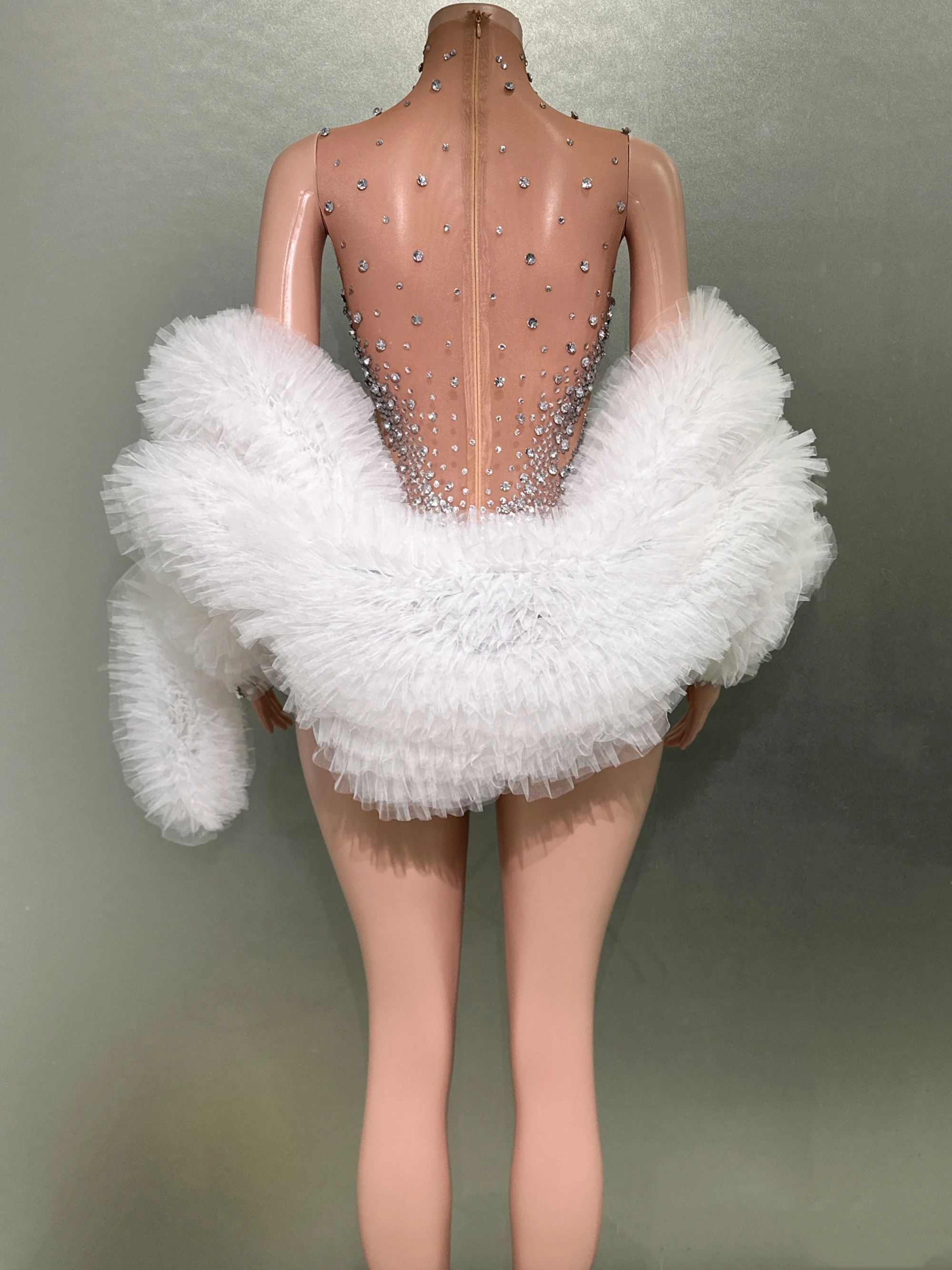 Luxury Diamonds Sexy See Through Sleeveless Sheath Bodysuit Evening Party Performance Costume Nightclub Singer Dancer Stage Wear