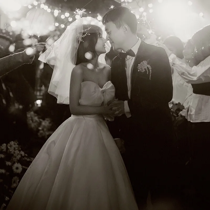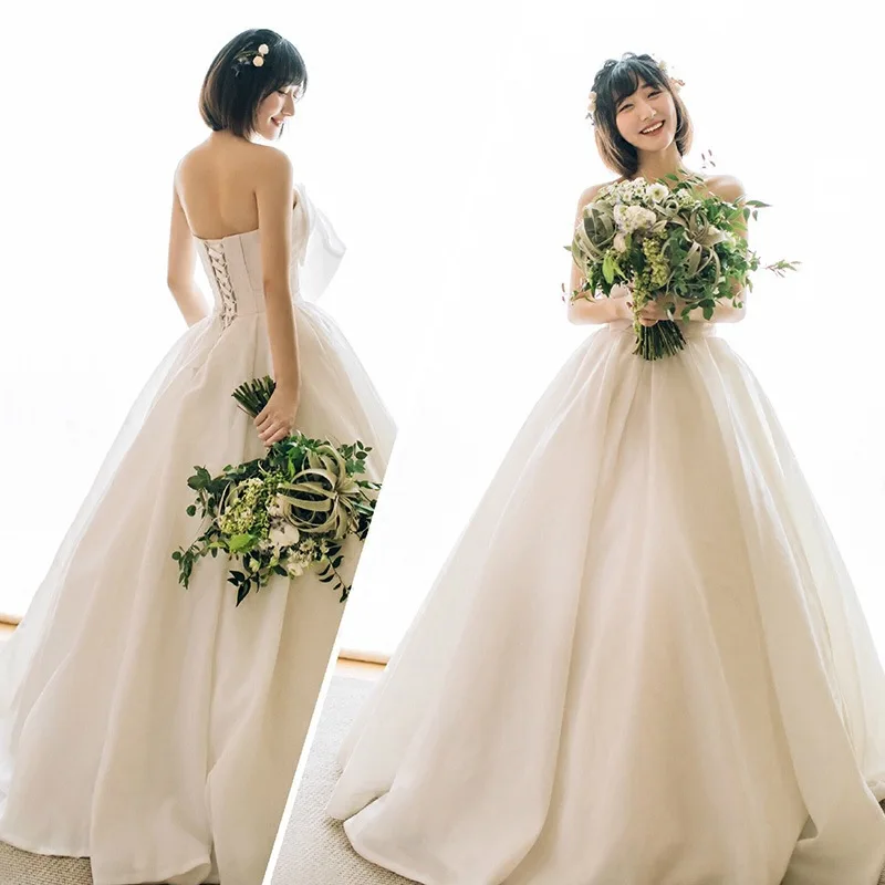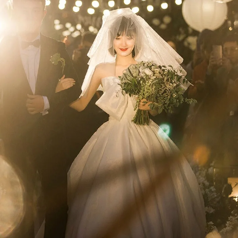 Luxury White Crepe Simple Sweet Bow Strapless Wedding Maxi Bride Dresses Elegant Long Evening Host Pregnant Women Formal Dress