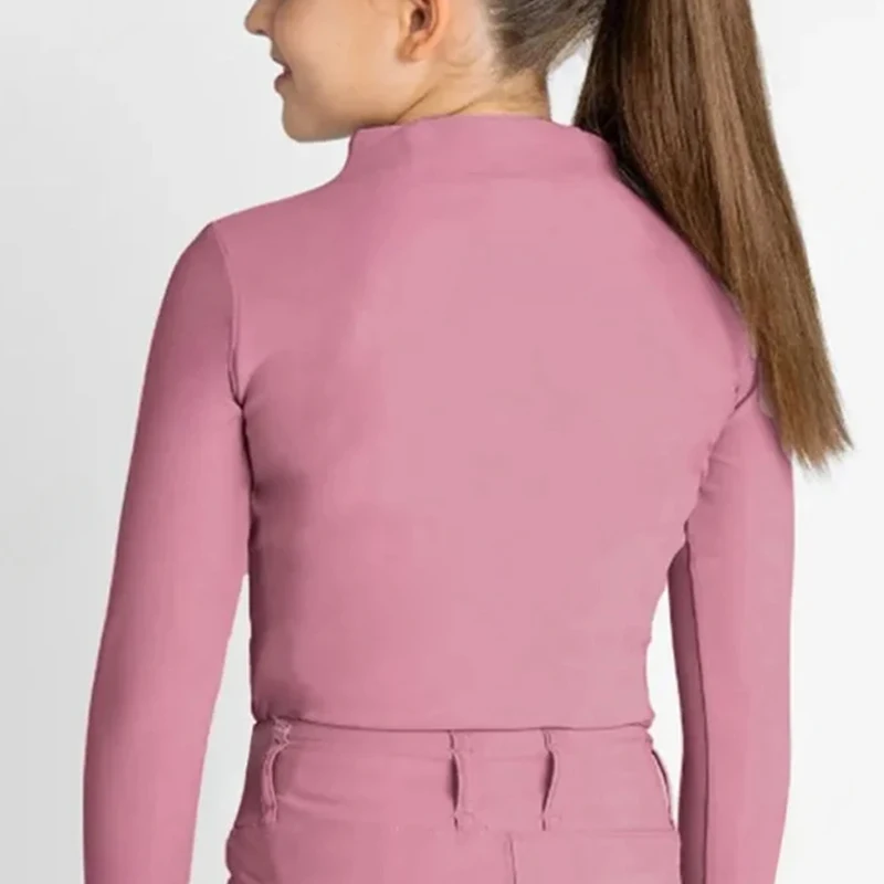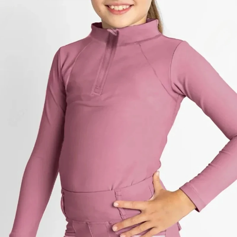 MXLLINA Girls Equestrian T-Shirts Zipper Horse Riding Long Sleeve Tops Trainning Competition White Base Layers Sports Blouse