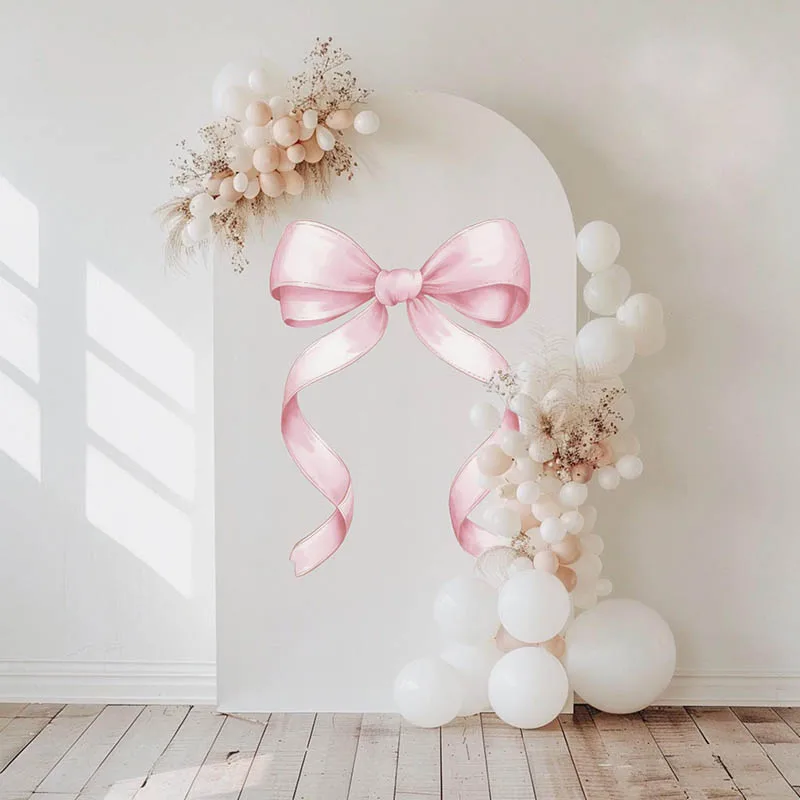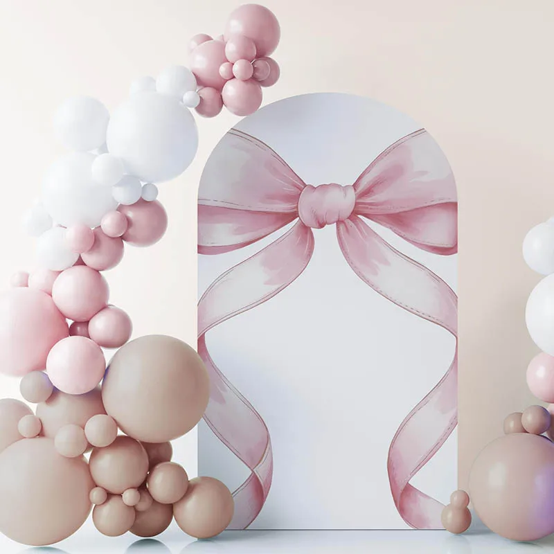 Mehofond Custom 2-Sided Blush Pink Ribbon Bow Sweet Girls Birthday Party Baby Shower Cover Arch Wall Background Decor Backdrop