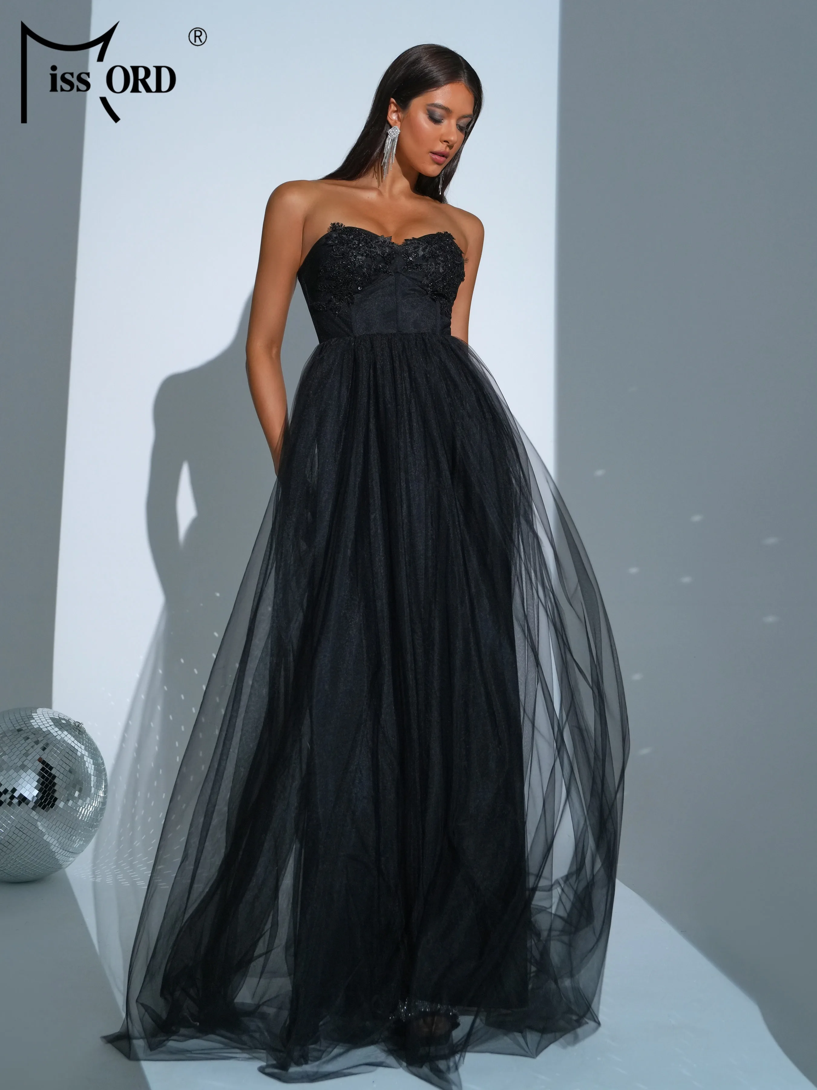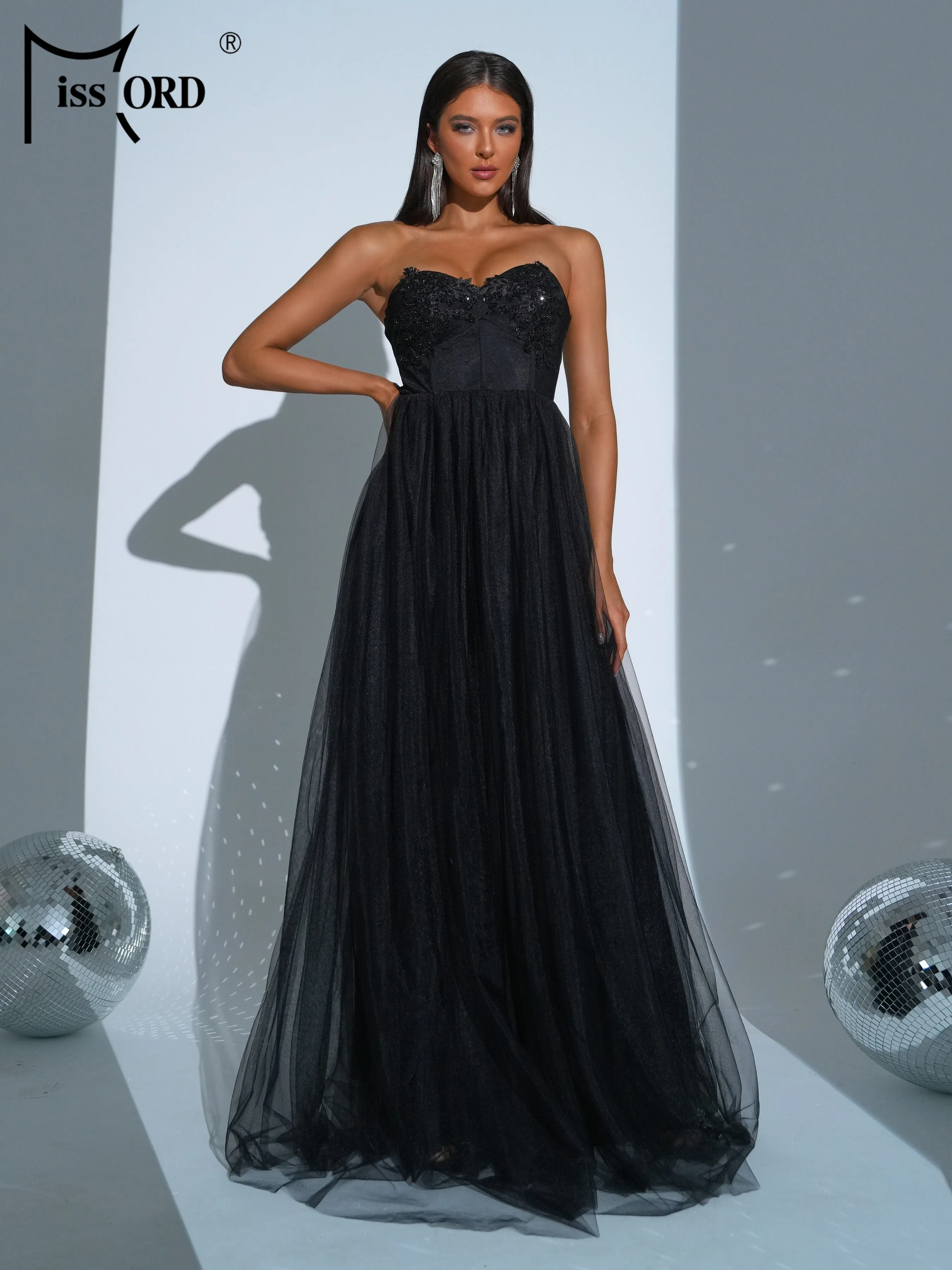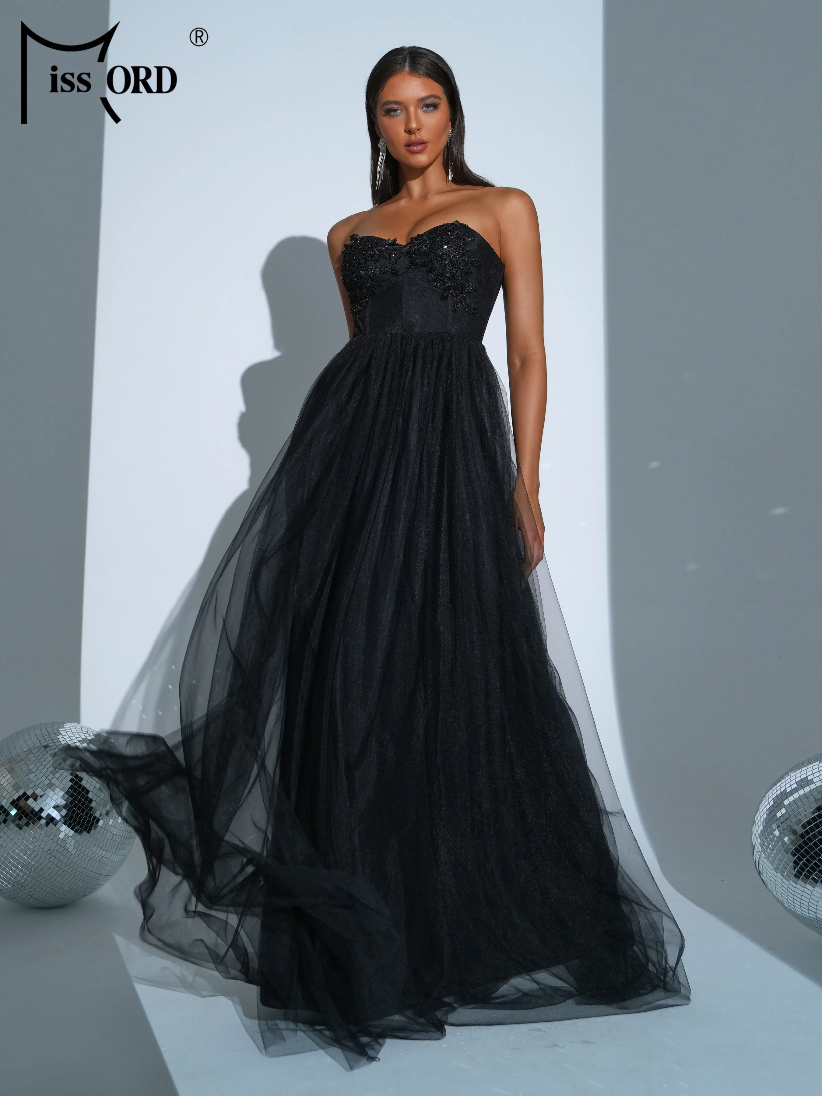 Missord Summer Dress Women 2024 Trend New Black Strapless A Line Mesh Evening Wedding Birthday Party Dress